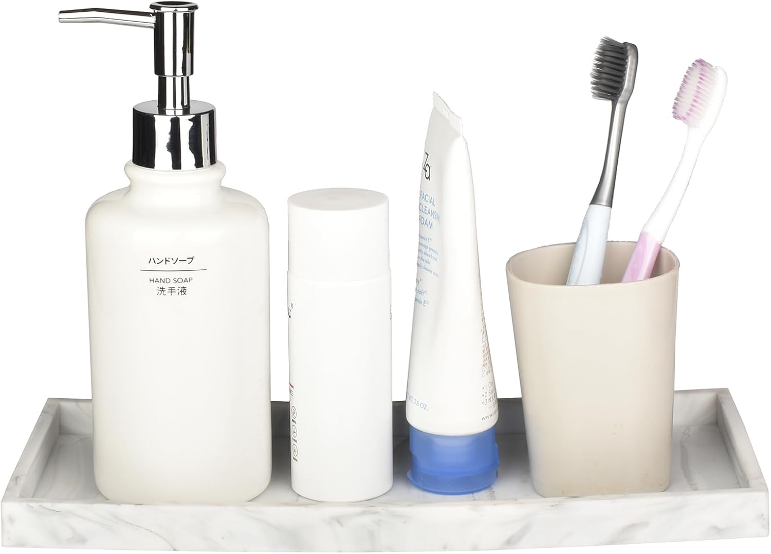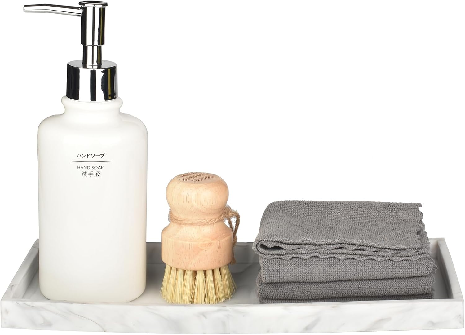 DNC Silicone Bathroom Tray for Counter, 2PC 11.8" Vanity Tray for Countertop, Kitchen Sink Soap Tray for Dish Holder Dispenser Toilet Tank Desk Organizer Marble White