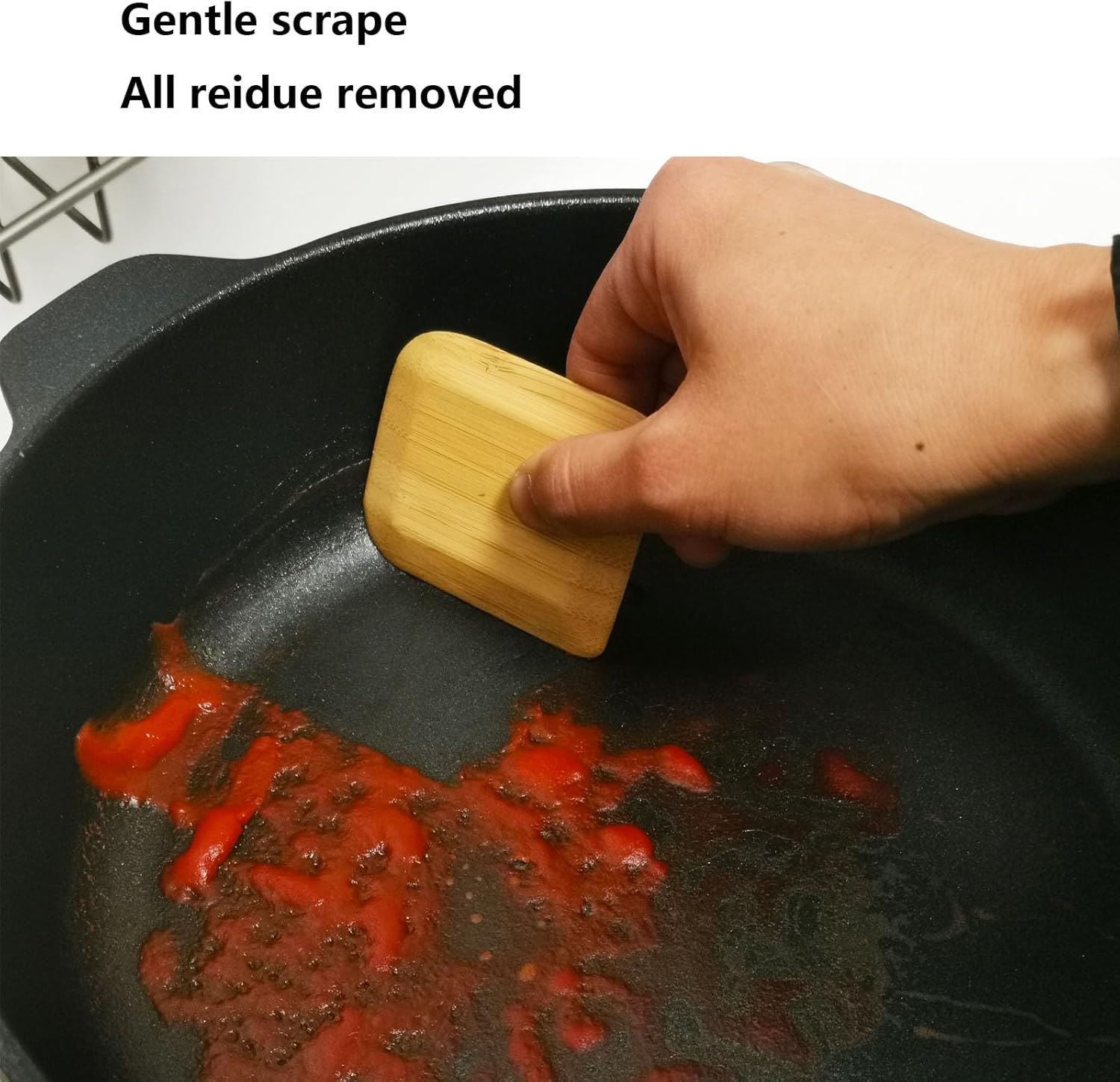 Bamboo Pan Scraper Tool (Pack of 6), Size 2.8" x 2.4" Eco-Friendly Pot Scraper,Clean Pans, Dishes, Bowls, and Plates, Removes Food Effectively Without Scratching