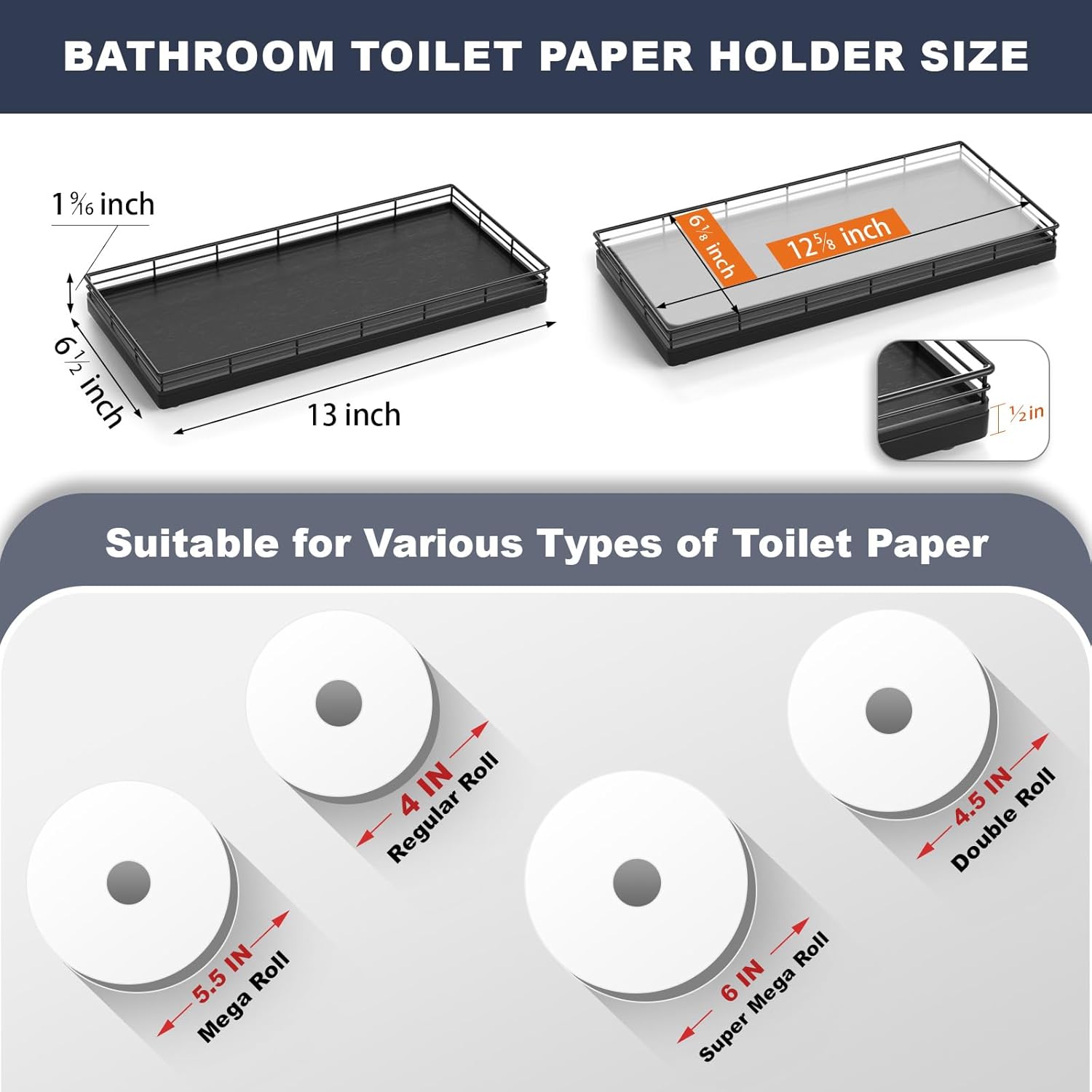 - Versatile Functionality: Elevate your daily routine with our toilet tank basket tray; Neatly arrange bathroom essentials such as toilet paper, lotions, scented candles and potted plants, keeping your countertop tidy; Add a touch of elegance to your dresser by using the bathroom vanity tray to display perfumes, jewelry, and cosmetics; Impress your guests with neatly arranged hand towels and toiletries organized on the large toilet tray for bathroom counter or use it as a kitchen soap tray