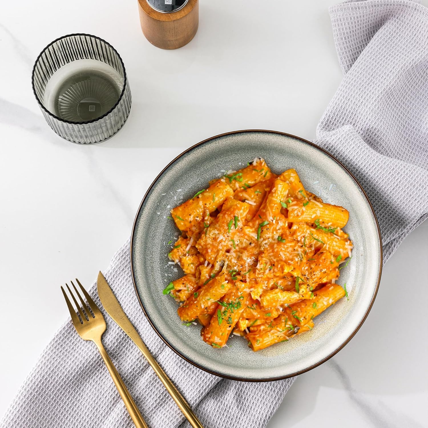 - 【Convenient and Space-saving】: Made from durable stoneware, these pasta bowls are stackable and dishwasher, microwave, and freezer safe. Their humanized design makes them easy to wash with dish soap and hot water, and they take up minimal space in your cabinet
