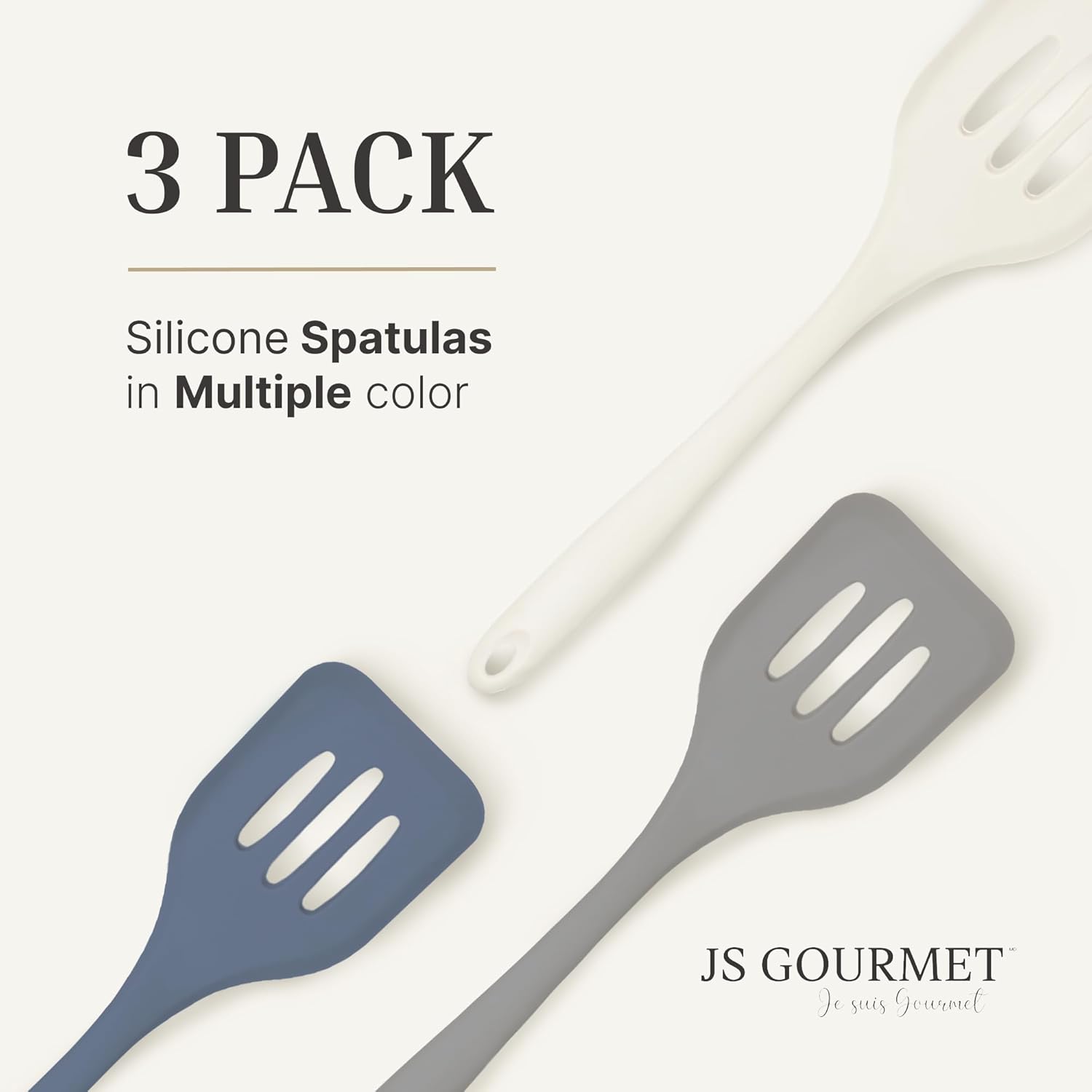 3 Pcs Colorful Silicone Slotted Turner Set, Heat Resistant Non-Scratch Kitchen Spatula Flipper with Comfortable Handle for Non-Stick Cookware