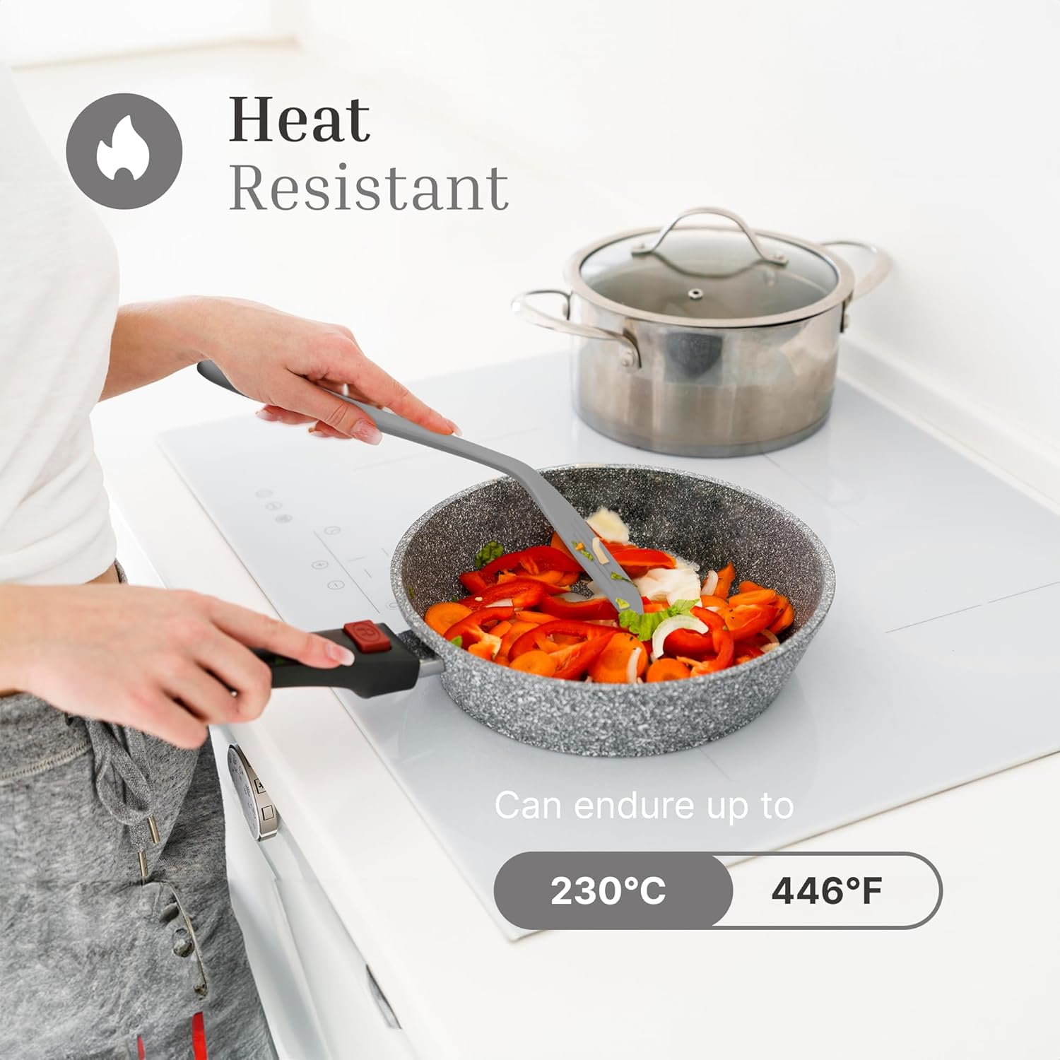 - ๐๐จ๐ง-๐๐ญ๐ข๐๐ค ๐๐จ๐จ๐ค๐ฐ๐๐ซ๐: Our silicone turner spatula is specially crafted to be sleek and non-scratch, this slotted turner works best for non-stick pots, pans, and cookware; by preserving their surfaces, these kitchen turner spatulas not only enhance the lifespan of your cookware but also ensures an efficient cooking experience