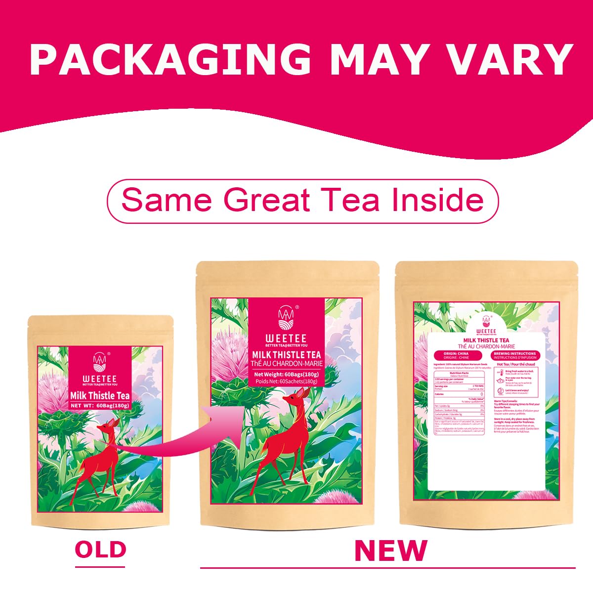 WT WEETEE Milk Thistle Tea Bags, Made with 100% Pure Milk Thistle Seeds, Natural Caffeine-free Herbal Tea Detox Tea 3g x 60 Counts