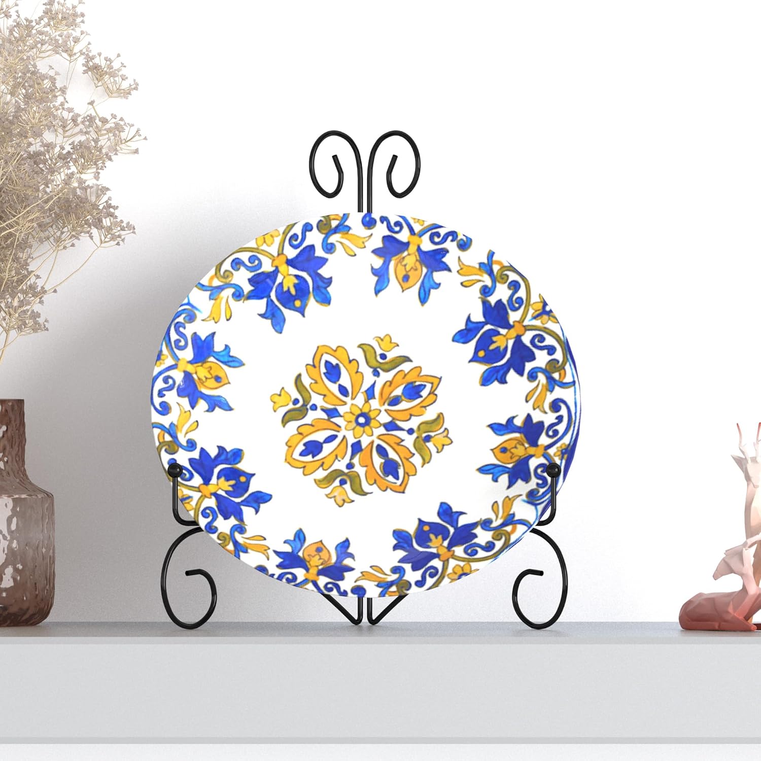 - Elevate Your Space with Stylish Plate Holders: Elevate your space with our stylish plate holders. Beautifully designed with simple and smooth lines, they serve as both functional items and standalone pieces of art. Inject sophistication and style into your vacant desks or display shelves with these minimalist iron stands. Their sleek design seamlessly blends with diverse interiors, enhancing the aesthetics of any room.