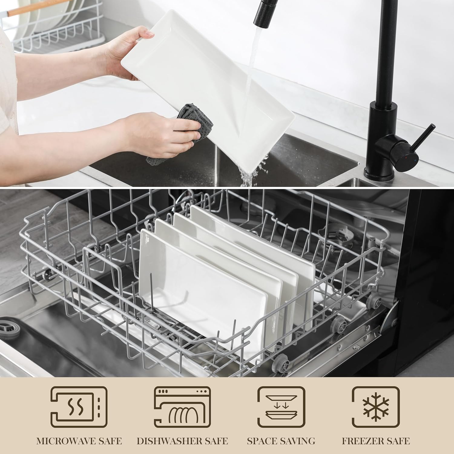 - Durable & Long-Lasting - Crafted from high-grade porcelain, our serving trays are incredibly durable and resistant to chips and scratches. The trays for serving food are built to last, ensuring you can enjoy their beauty and functionality for years to come. Rectangular serving platters are safe in dishwasher, oven and microwave.