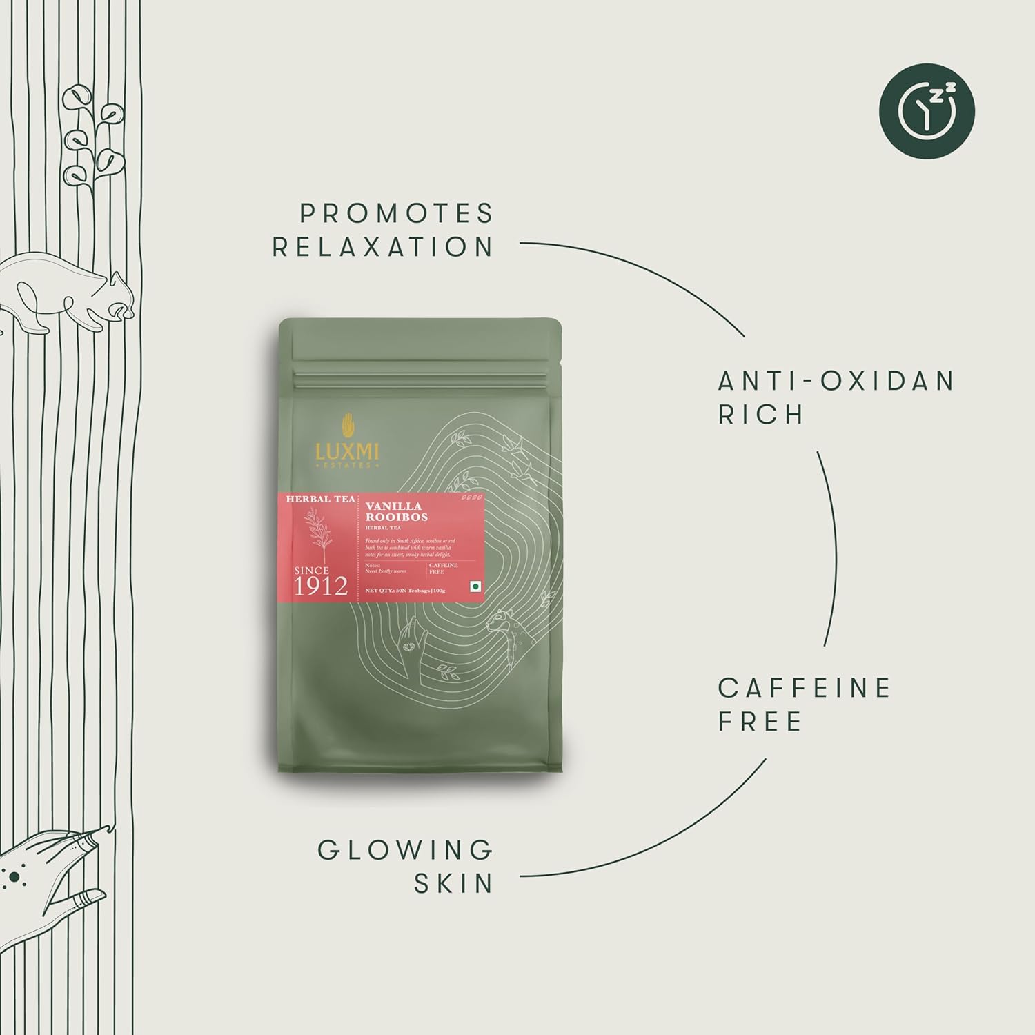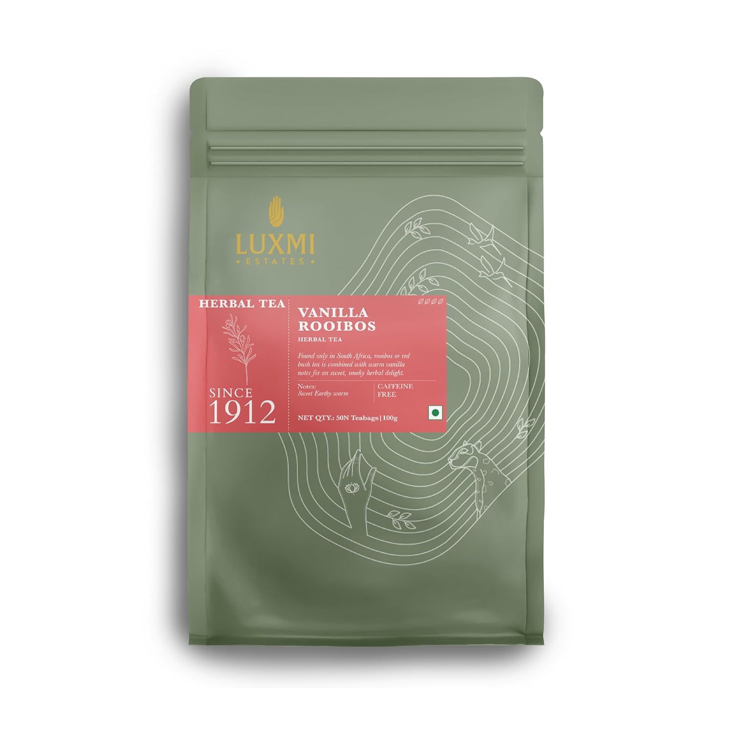 Luxmi Estates Rooibos Vanilla Organic Rooibos Tea (50 Tea Bags) Caffeine Free Tea Bags For Relaxing, Calming, and Stress Relief, With Certified Organic Herbal Tea