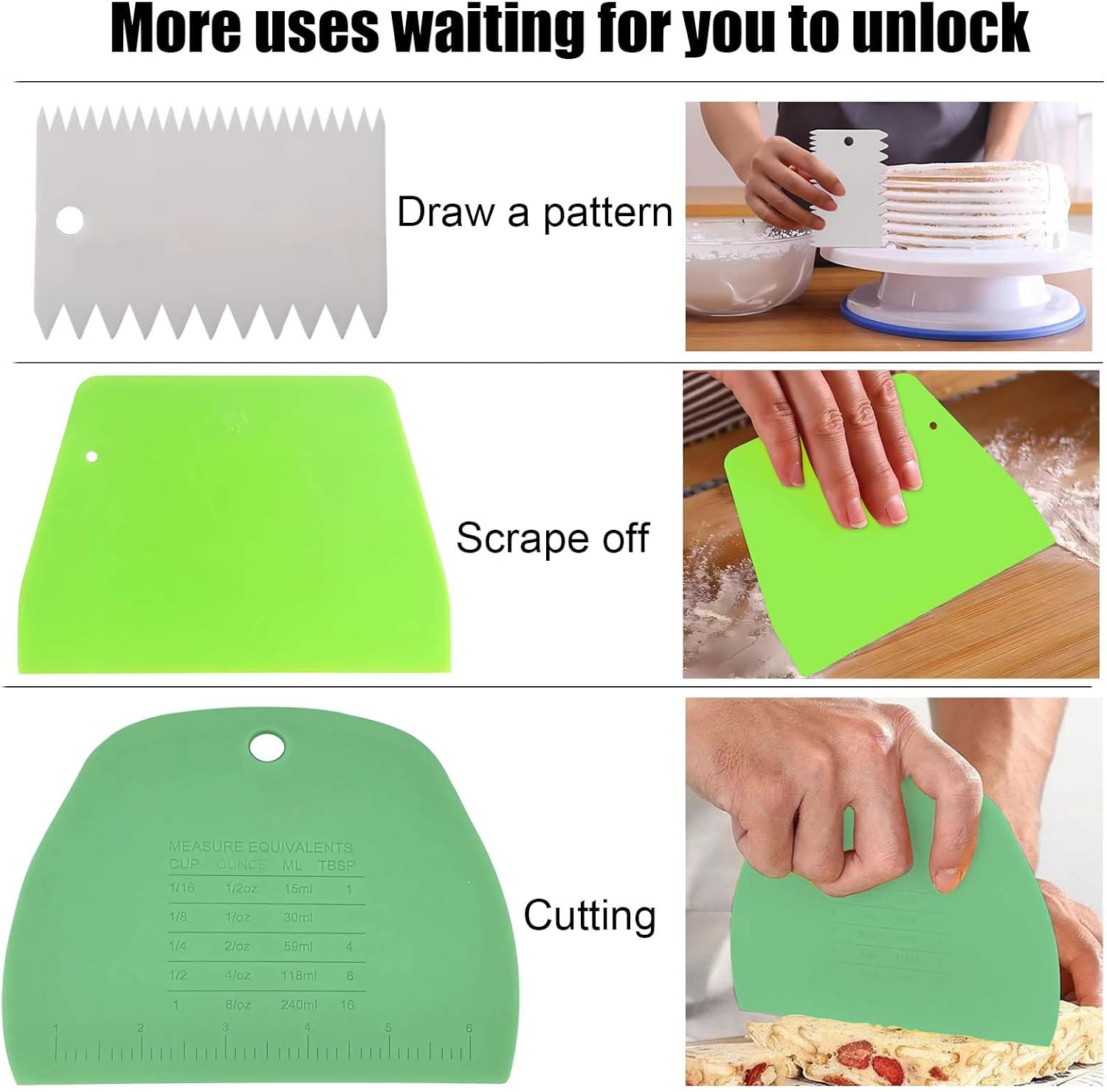 - 5.【Easy to operate】Suitable for professionals and novice bakers,non-professional baking maker,chef or cake decorating beginner.you can make the cakes & pastries that you like by using these scraper tools set, help you create different interesting food and unlimited delicious food.