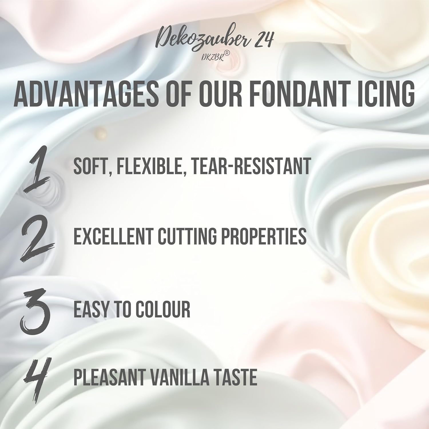 - SLIGHT VANILLA TASTE: The fondant icing has a slight vanilla taste that combines perfectly with your cake, cupcake or dessert.