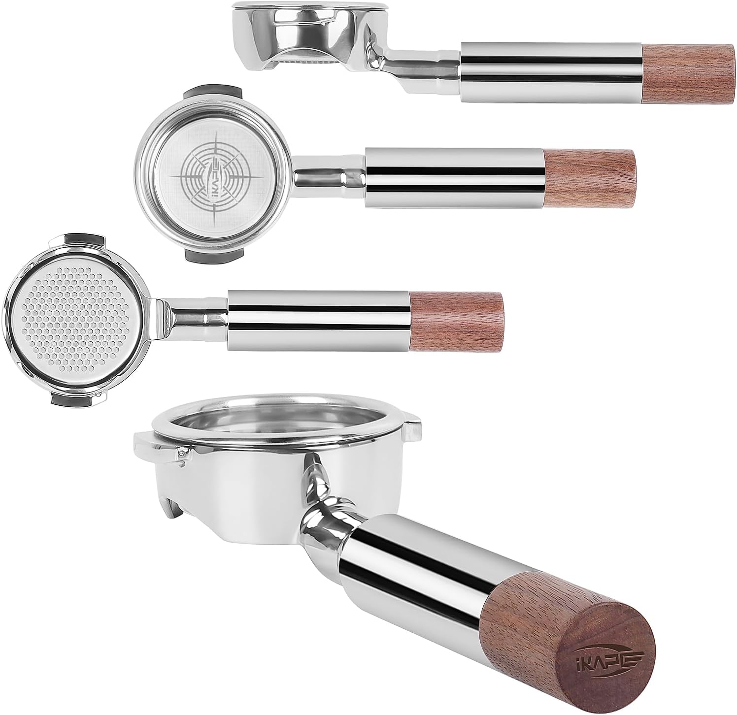 IKAPE 58mm Bottomless Naked Portafilter, Suitable for E61, Flair 58, ECM, Rocket, Sanremo, Synesso, Slayer, VBM Coffee Machines (Included 20g Capacity Filter Basket)