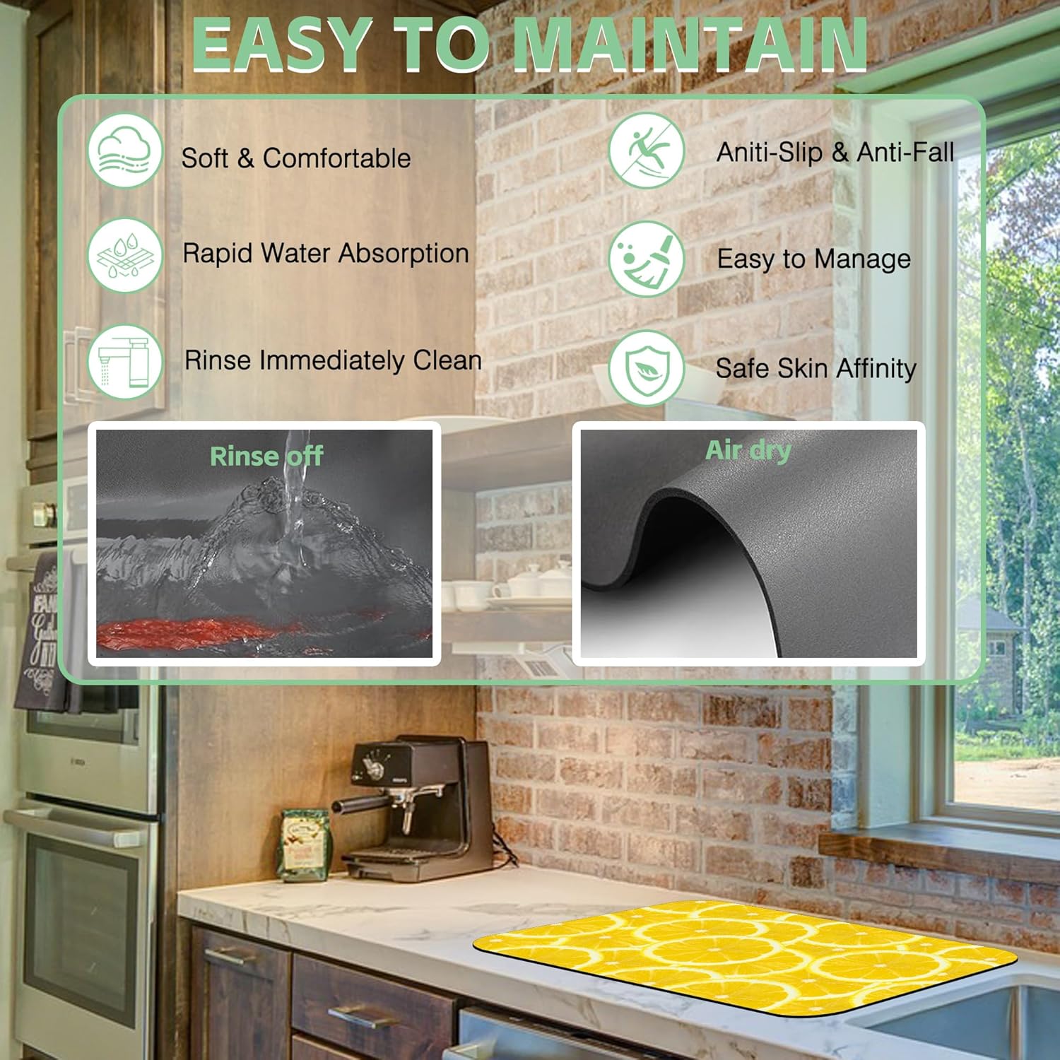Fresh Yellow Lemon Slice Dish Drying Mat,12"X19" Absorbent Fast Dish Drying Mat for Kitchen Counter Pot and Pan, Kitchen Accessories