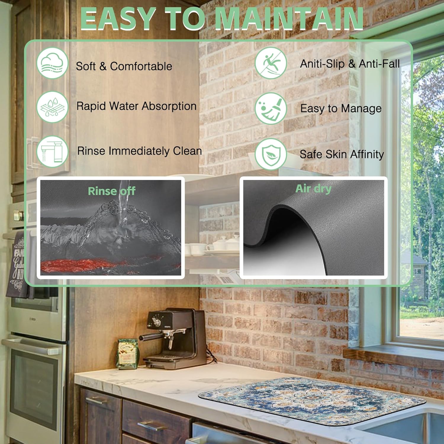 Bohemian Textile Rug Texture Dish Drying Mat,16"X24" Absorbent Fast Dish Drying Mat for Kitchen Counter Pot and Pan, Kitchen Accessories