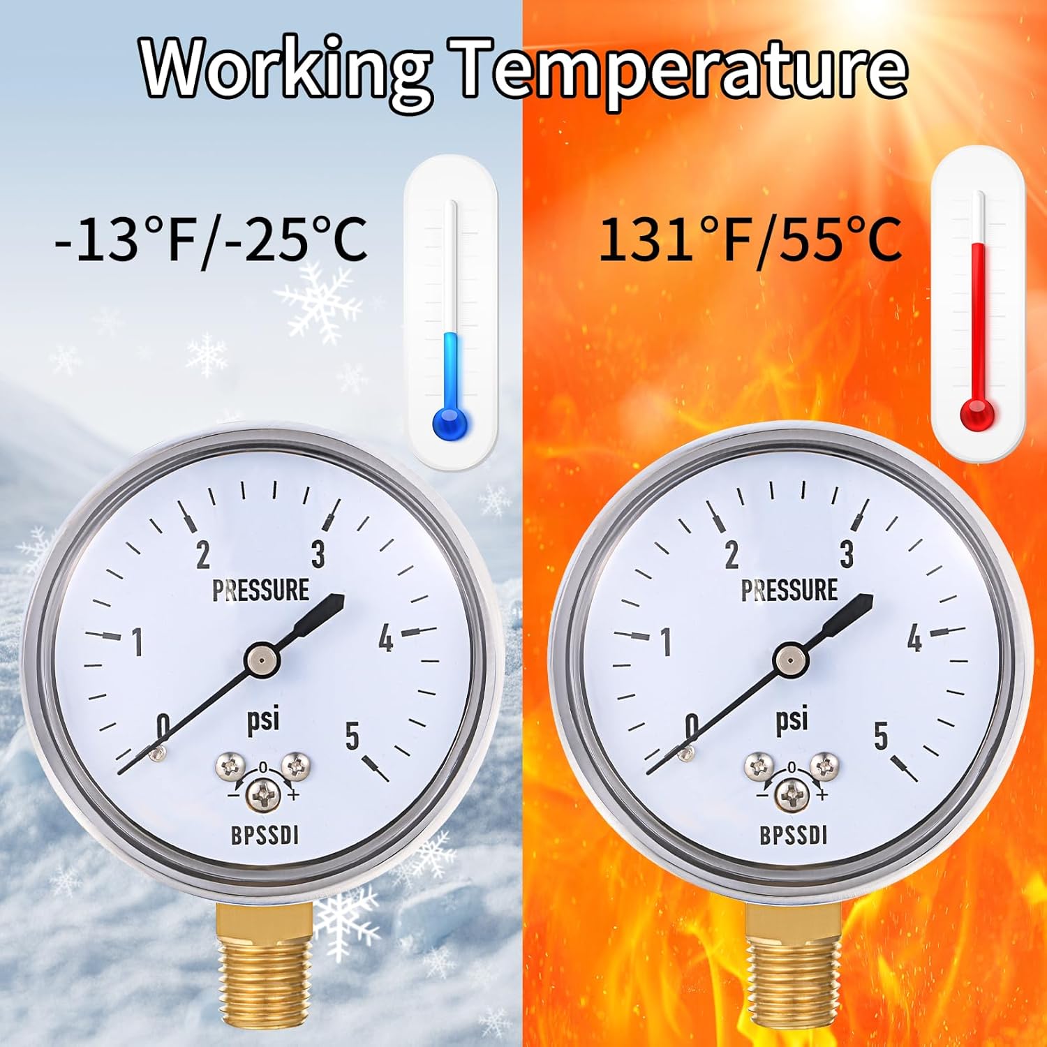 - Available all Year Round- Water pressure gauge for home has an operating temperature range of -25 to 55°C,maintaining performance in a variety of conditions.