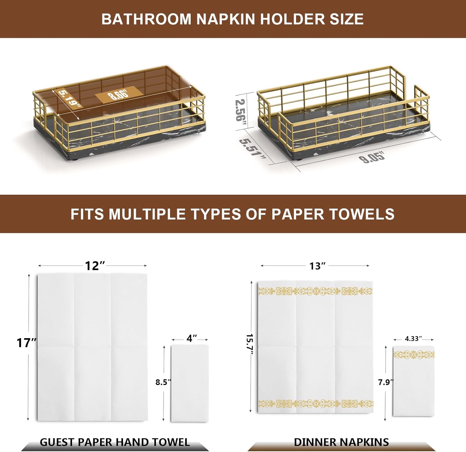 - Quite Versatile: This guest towel holder hold paper towels in the guest bathroom for hand drying; hold paper bath towels for your powder room, easy to retrieve towel when needed; It can also be used as a lunch napkin holder, looking very nice on the dining table