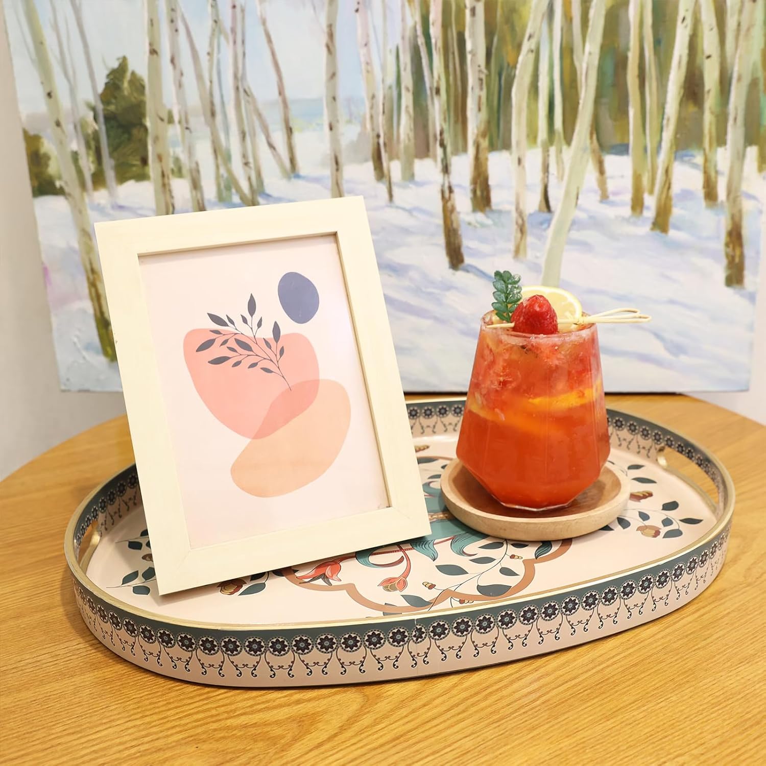 Oval Plastic Serving Tray with Handles, Elegant Decorative Tray for Coffee Table, Ottoman, Living Room, Kitchen, Outdoor Use. 10"*16"*1.4" A