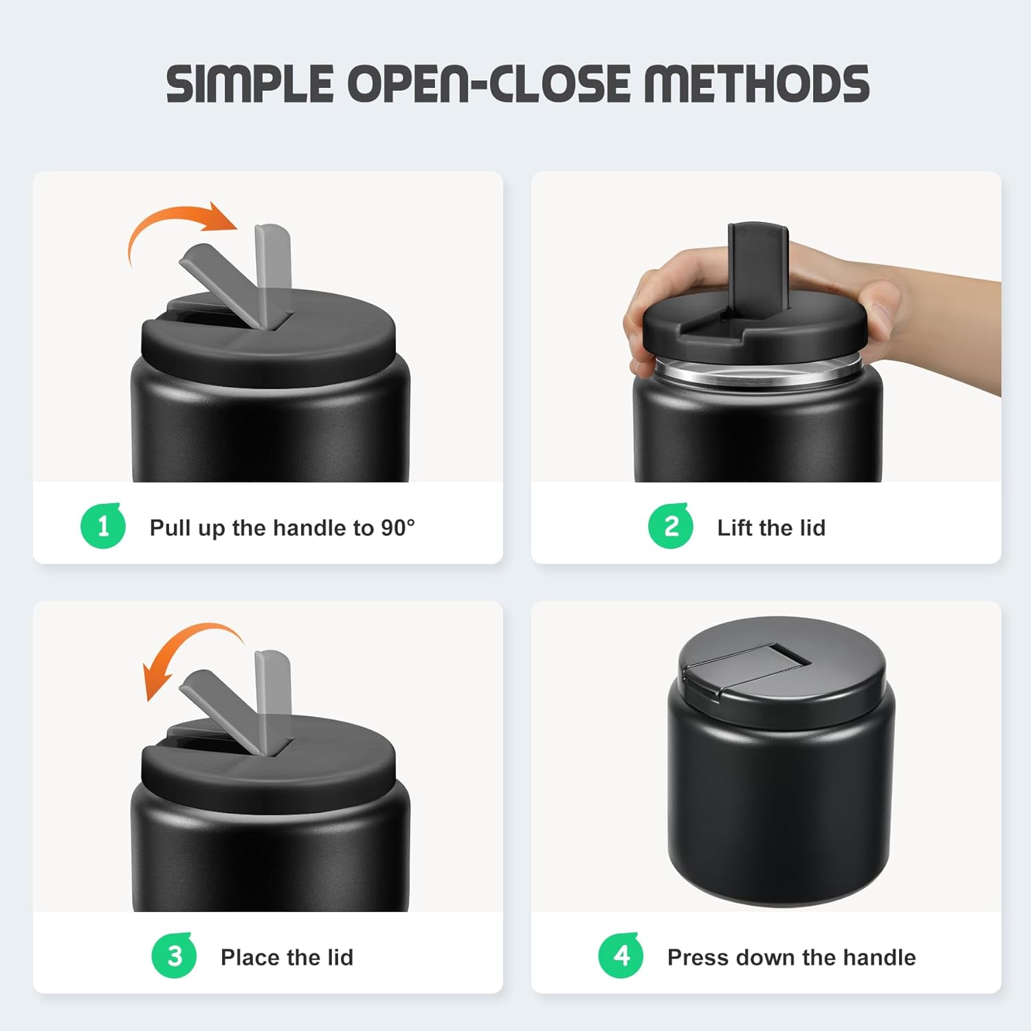 - Use Tips and Notes:In order to keep food hot or cold for a longer time, we recommend preheating/precooling with hot water/ice water for 5~10 minutes before putting food or soup into the food jar, and then put the food in. Note that when you disassemble the cover for cleaning and then reinstall it, be sure to lift the top of the cover before installing it. Otherwise, it will not be firm!!!