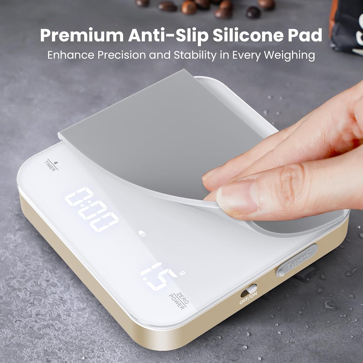 - 【Silent Brewing】Experience a tranquil coffee morning with our coffee scale's Mute Function. Press and hold the TIMER and ZERO buttons for approximately 2 seconds to deactivate the beeping sound, allowing you to enjoy a peaceful start to your day