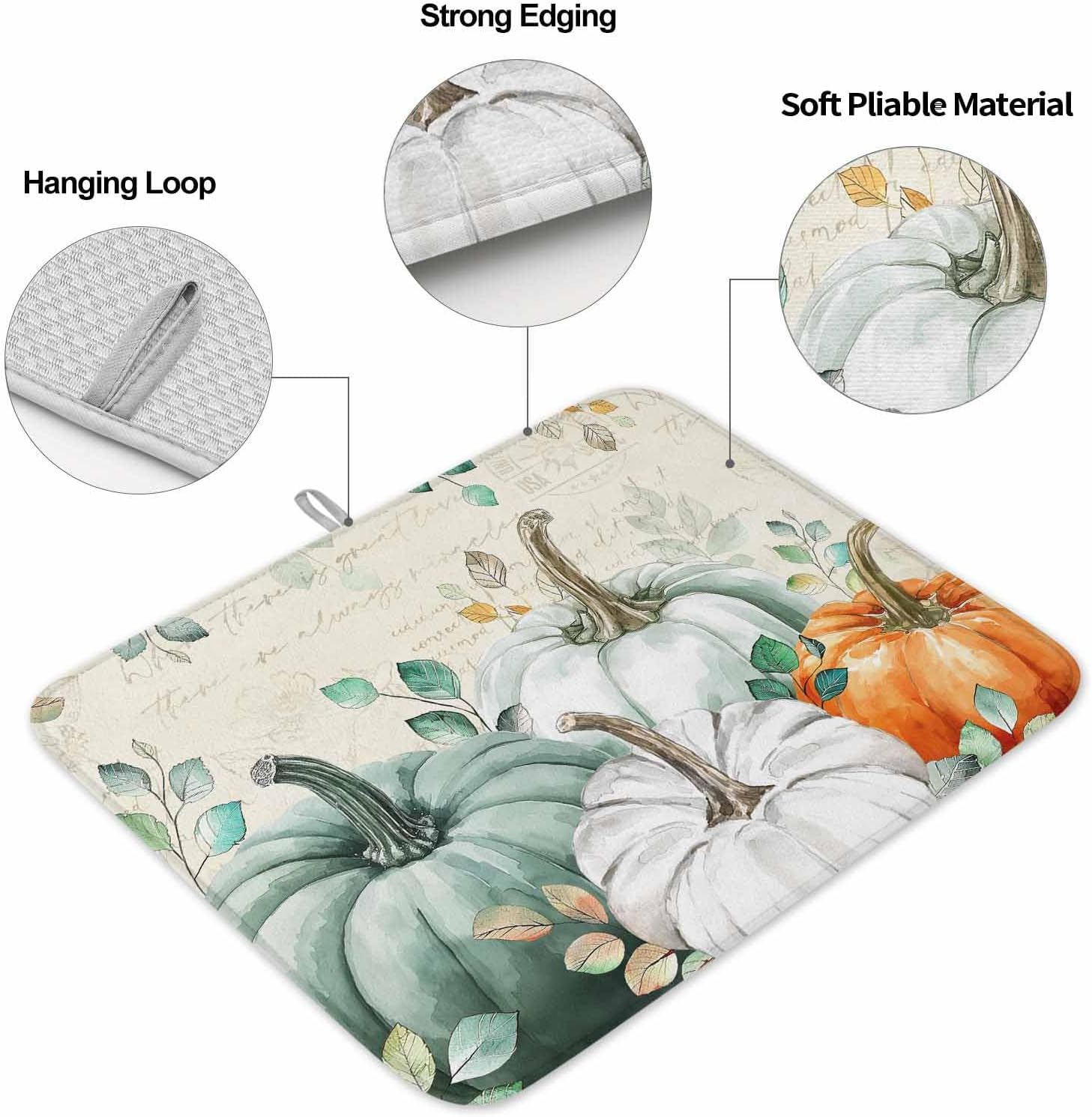 - Fall & Thanksgiving Decor - Pumpkin with eucalyptus leaves drying mats can add an chic holiday vibe and charm to your kitchen or coffee bar counter. The drying mat for kitchen counter with a unique hanging rope design that can be hung without occupying any space.