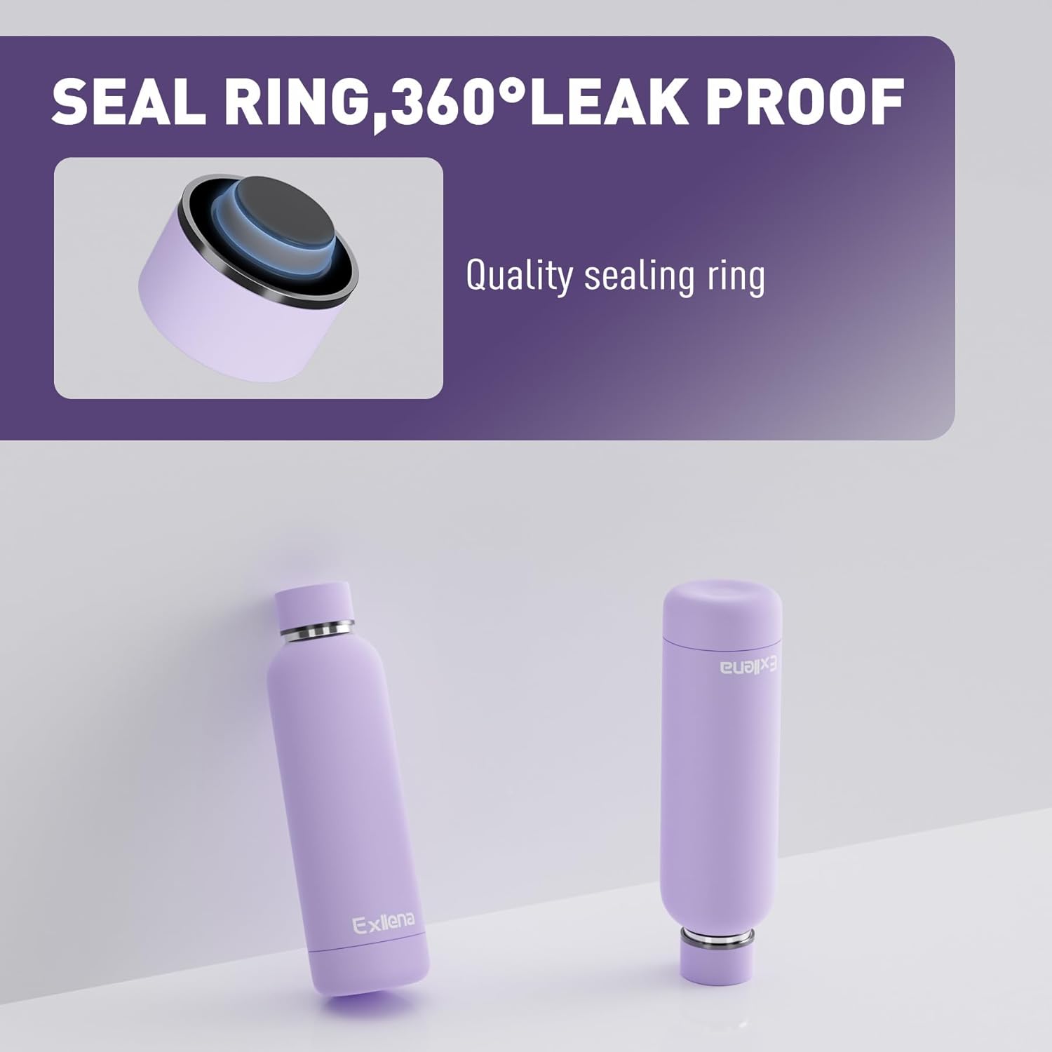 Slim Insulated Water Bottles for Travel 18oz with Clip, Double Wall Vacuum Stainless Steel Water Bottle Keeps Drinks Cold 24 Hrs/Hot 12 Hrs, 100% Leakproof, BPA Free(Purple)