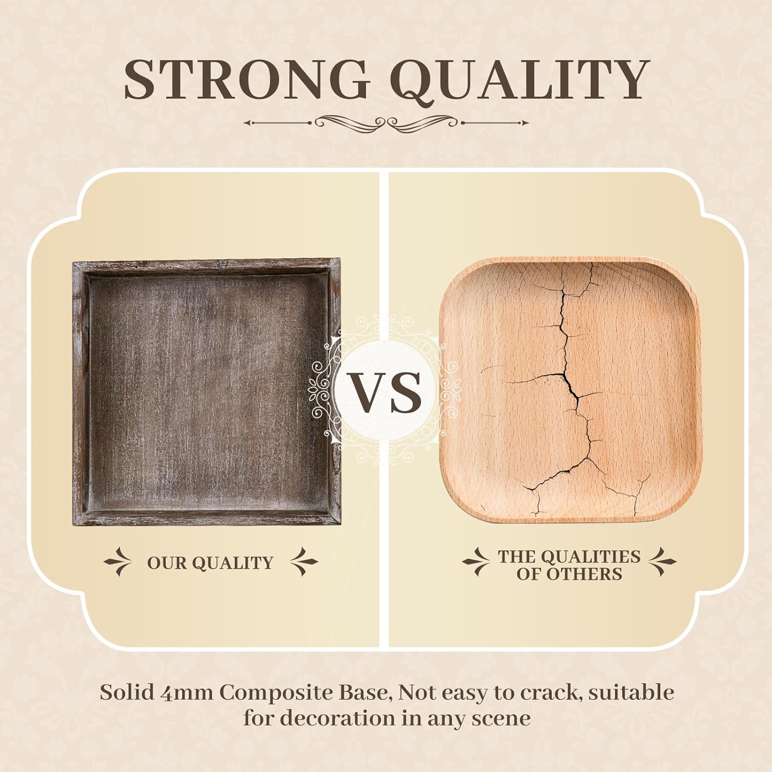 - [Carefully Designed]: He's not an oversized tray just larger than the regular siz, Each farmhouse decorative tray is handmade by skilled craftsmen. Designed to be 1” larger than the usual regular sized trays of 13" x 13" x 1.6" wooden tray is not only more practical but also beautiful to decorate, adding a unique and elegant touch to your home.