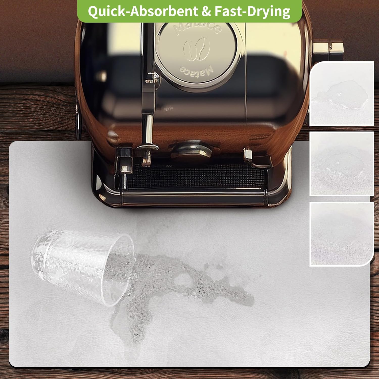 - 【Superior Stain Protection】 Crafted with an absorbent PU leather surface, the Matace Drying Mat quickly soaks up accidental spills and drips, keeping your kitchen counter clean and dry. Ideal for use as a coffee station mat or kitchen drying mat, it effectively protects your surfaces from everyday messes.