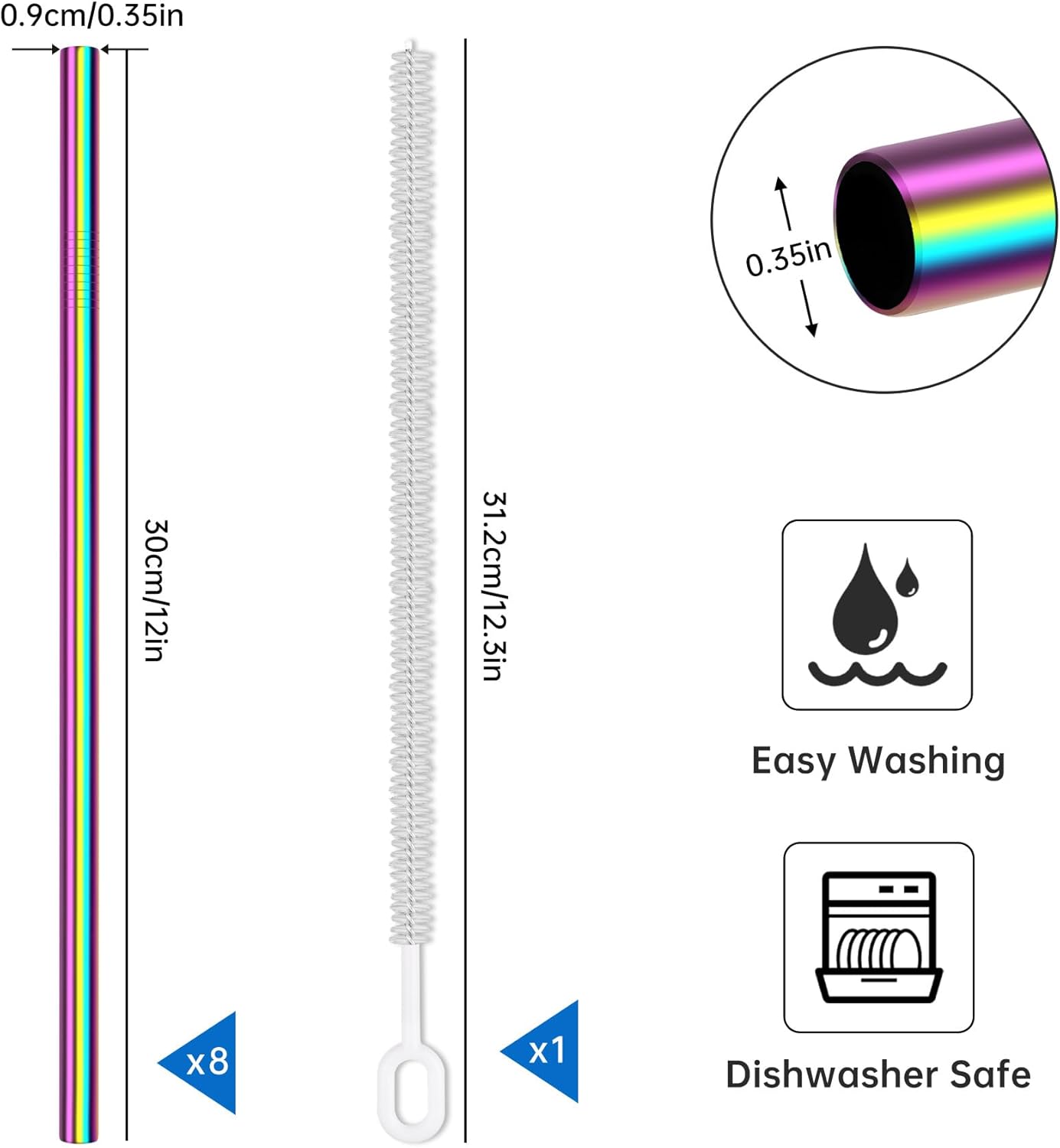 - š¹ Exceptional Value Set - This fantastic package includes 8 straight straws (12" x 0.35"),complemented by 1 additional extra-long cleaning brushes. Offering superior convenience and practicality, this set is a must-have for any household.