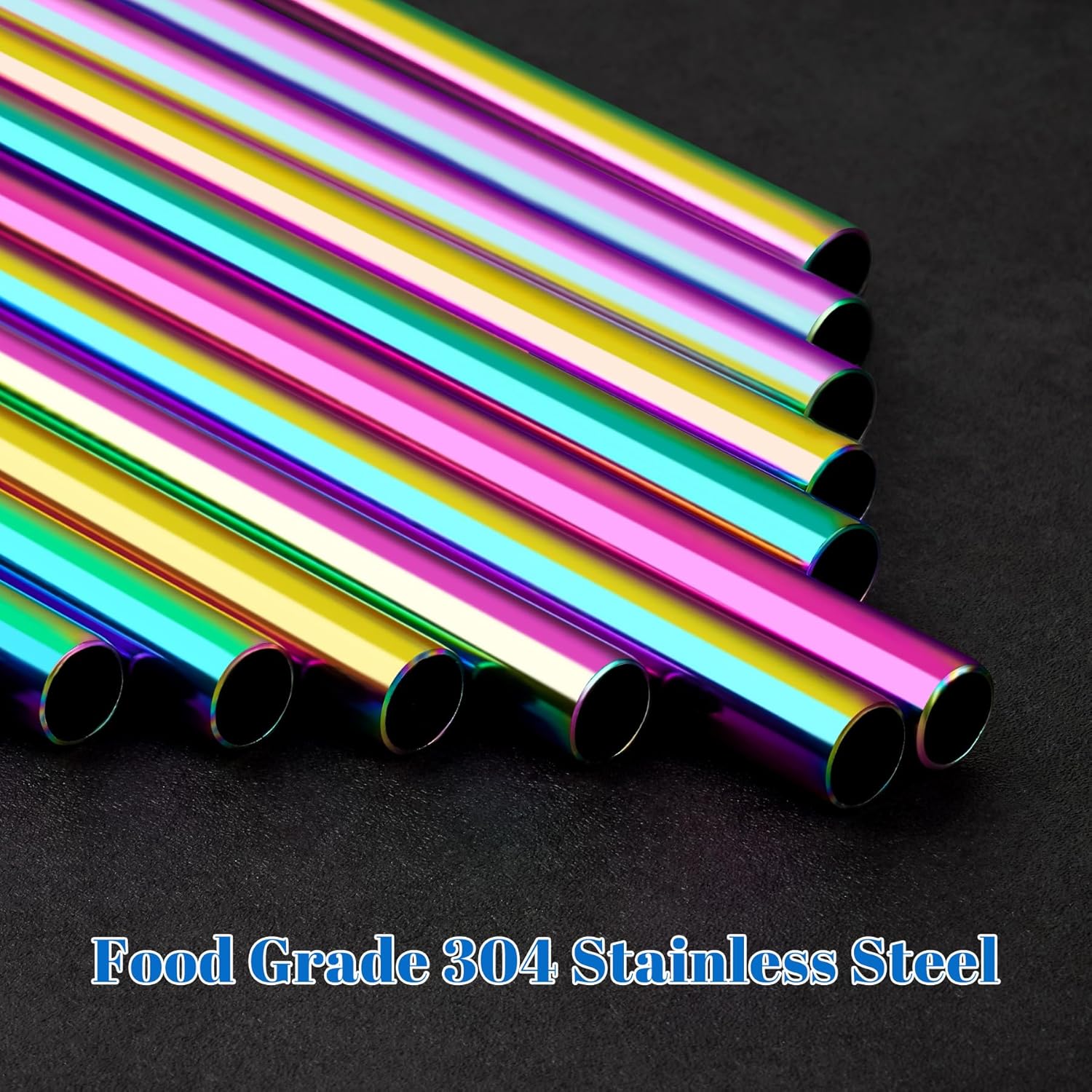 Tomorotec 8PCS Stainless Steel Straws for Stanley Tumbler 40oz, 12" Metal Straws for Stanley Cup with Brush, Reusable Drinking Straws for Smoothies, Milkshakes, Dishwasher Safe & BPA-Free (Iridescent)