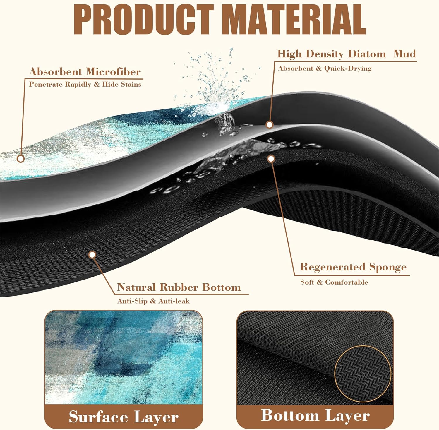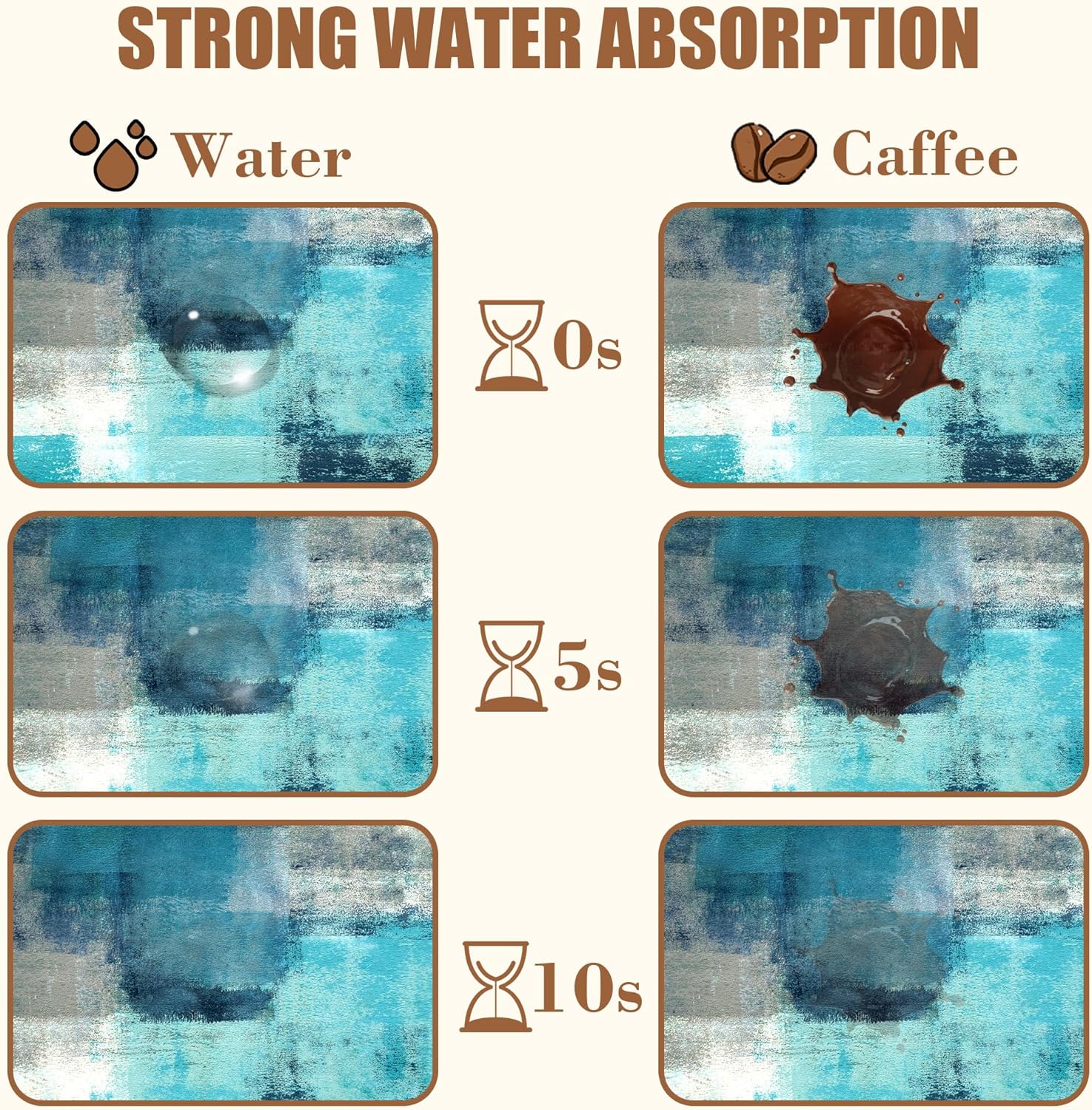 - 【Absorbent & Quick-Drying】The surface of this coffee mat is made of absorbent microfiber and the middle is made of composite sponge, which can absorb up to 4 times its weight in water and has a strong water absorption capacity. The high-density design makes it fast drying and can quickly absorb spilled liquids to keep your counter or desktop dry