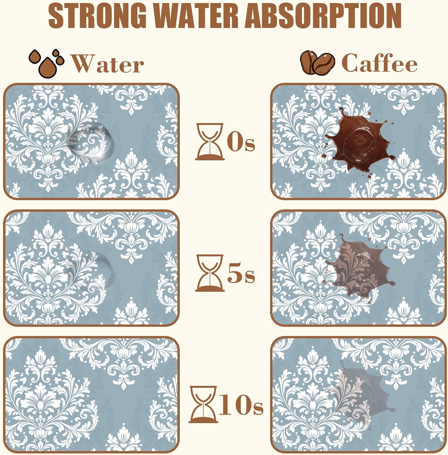 - 【Multiple Uses】Not only is our dish drying mat suitable for kitchen counters, coffee bar accessories, or pet feeding mats, absorbing water droplets to keep dry, but it also protects countertops from hot pots and pans, as well as small appliances such as blenders and coffee makers, making it a great gift for all holidays