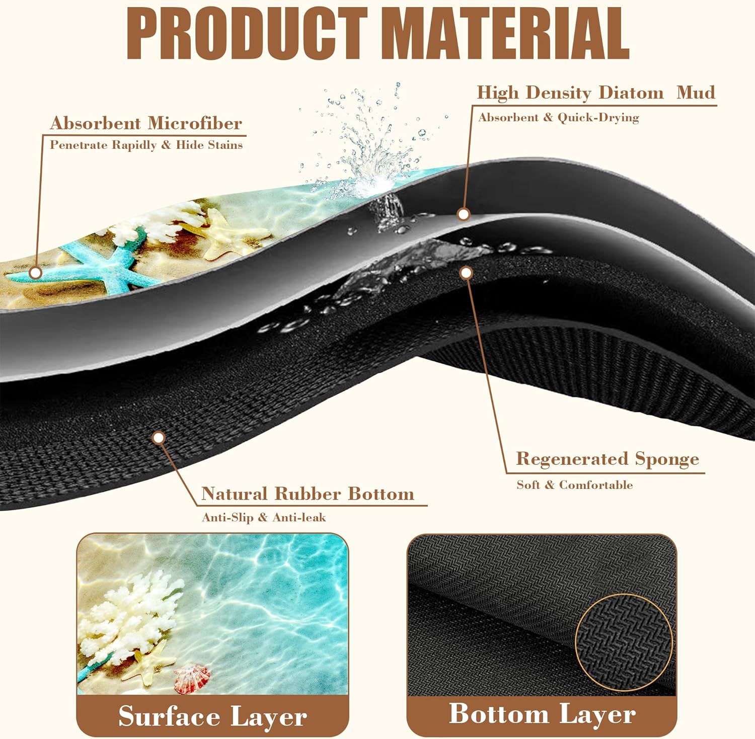 Starfish and Seashell Beach Dish Drying Mat for Kitchen Counter - Hide Stain Rubber Backed Absorbent Mat - Fits Under Coffee Maker, Espresso Machine - 15.7 x 23.6 Inch