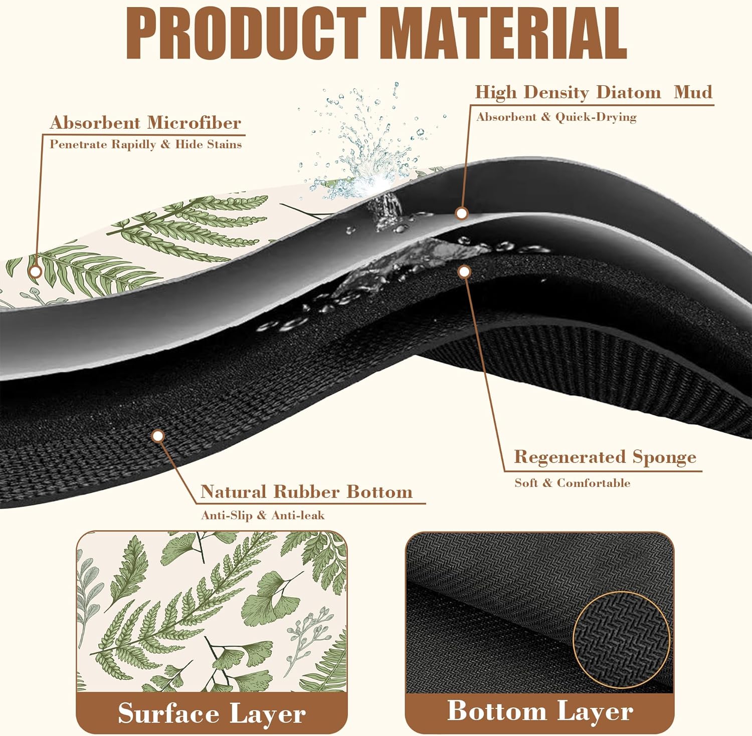 Leaves and Herbs Dish Drying Mat for Kitchen Counter Coffee Bar Mat Hide Stain Absorbent Rubber Backed Dish Drainer Rack Pad Coffee Maker Espresso Machine Table Accessories 15.7 x 23.6 Inch