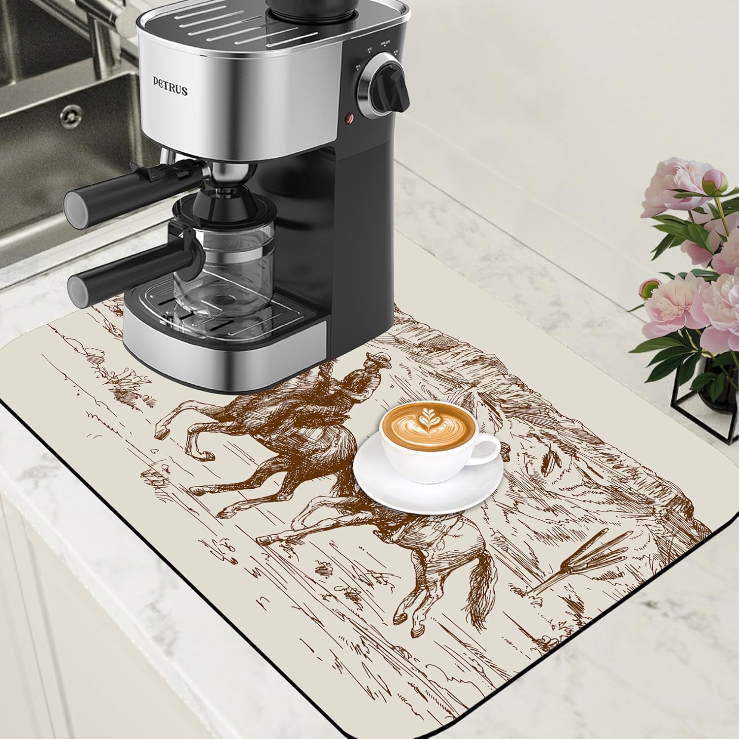 Dish Drying Mat Desert with Cowboys Coffee Bar Mat for Countertop Absorbent Coffee Mat Rubber Backed Hide Stain Dish Drainer Rack Mat Coffee Maker Coffee Pot Dining Room Decoration 15.7 x 23.6 Inch