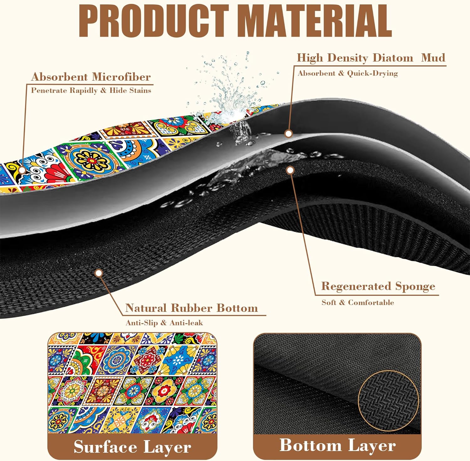 Talavera Mexican Tiles Dish Drying Mat for Kitchen Counter Bar Mat Hide Stain Absorbent Rubber Backed Coffee Mat Maker Espresso Machine Bar Accessories 11.8 x 19.7 Inch