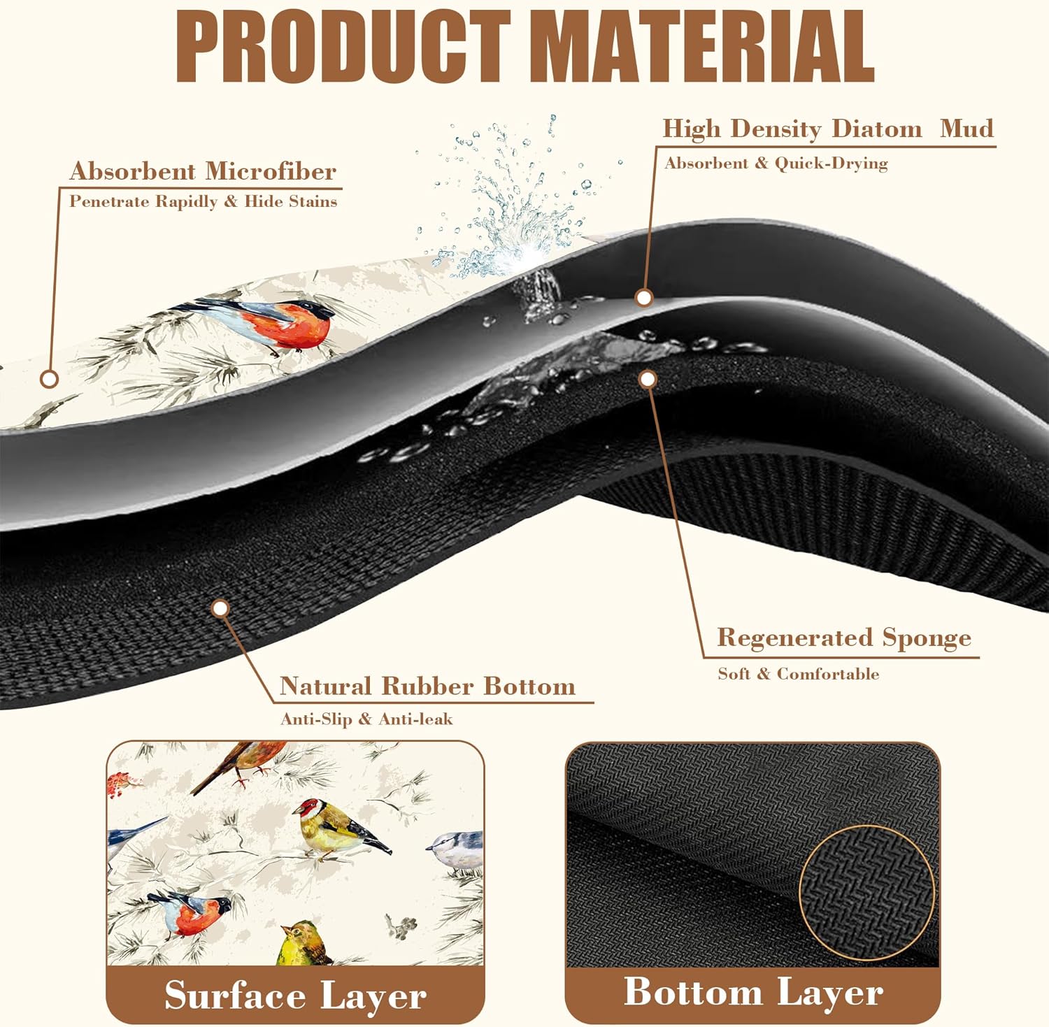 Cute Birds Coffee Mat Absorbent Dish Drying Mat for Kitchen Counter Hide Stain Rubber Backed Coffee Bar Accessories Fit Under Espresso Machine Dish Drainer, 15.7 x 23.6 Inch
