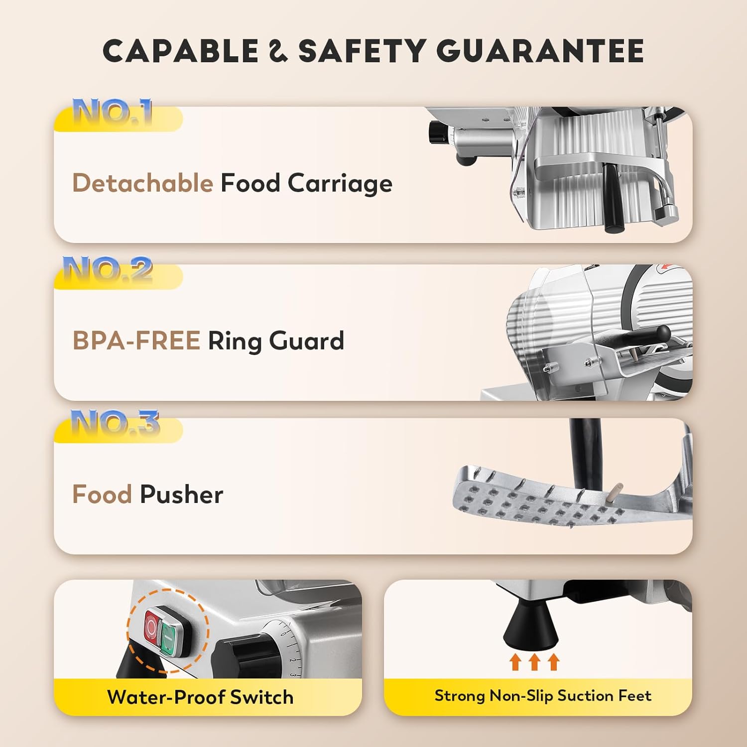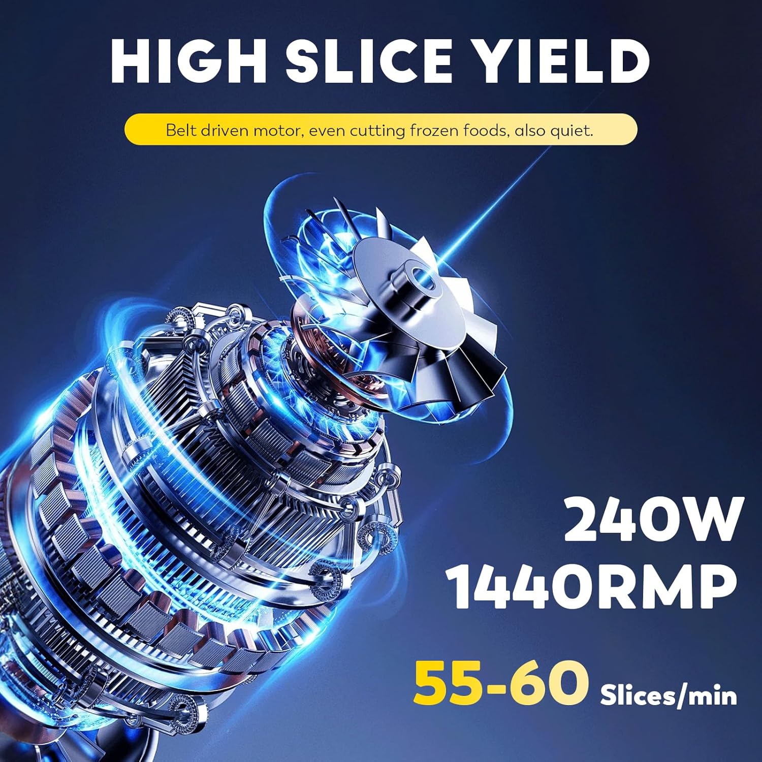 - 10" Premium Teflon Non-stick Blade,0-0.5”Adjustable Thickness,240W Motor Power-Low noise level.