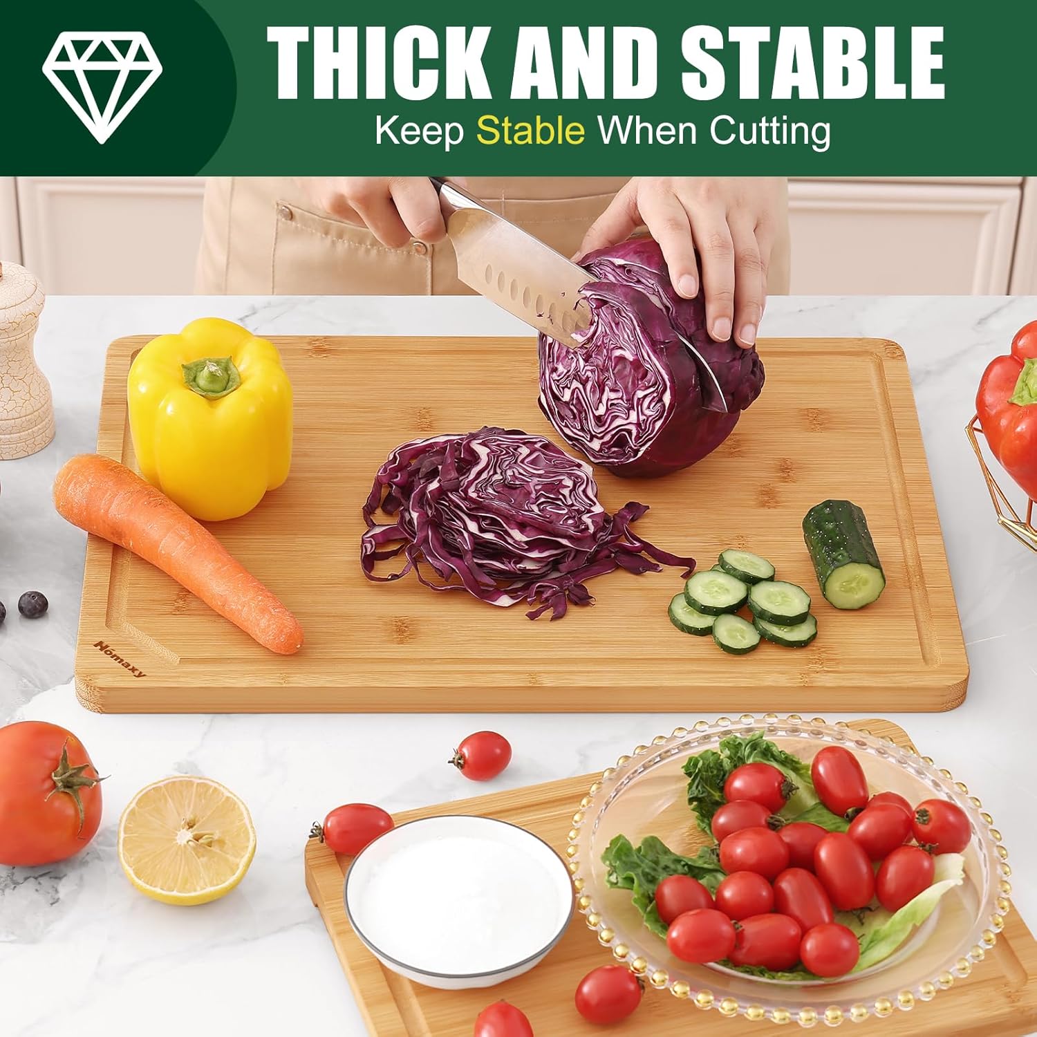 - EXQUISITE CRAFTMANSHIP: Our cutting board set boasts superb craftsmanship, making them highly durable and strong, without being overly thick. After undergoing meticulous polishing, they achieve a flawlessly smooth and flat surface, free from any burrs, cracks, or splinters