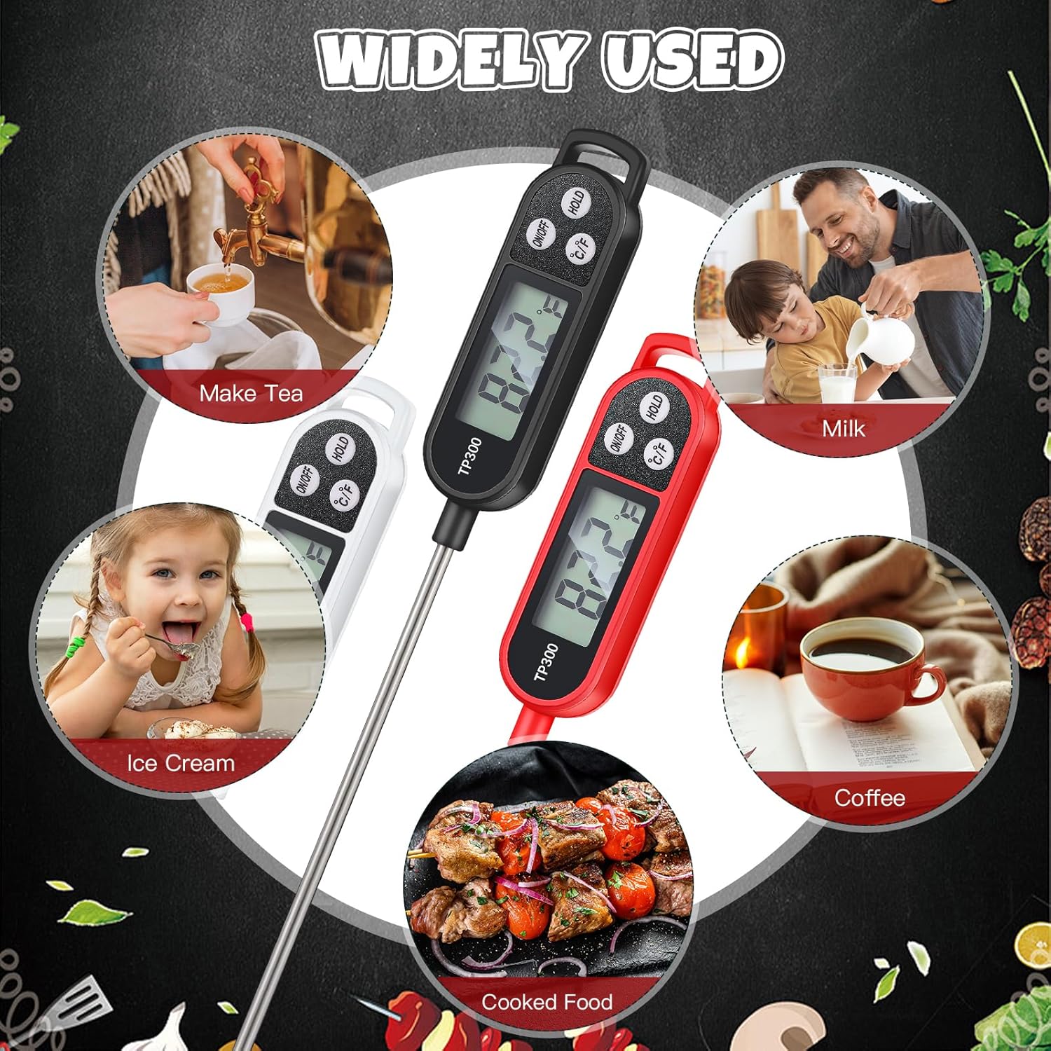Waterproof Food Thermometer with Long Probe Digital Meat Thermometer for Water, Liquid, Candle and Cooking Instant Read for Kitchen BBQ Grill Candy(Black,White,Red)