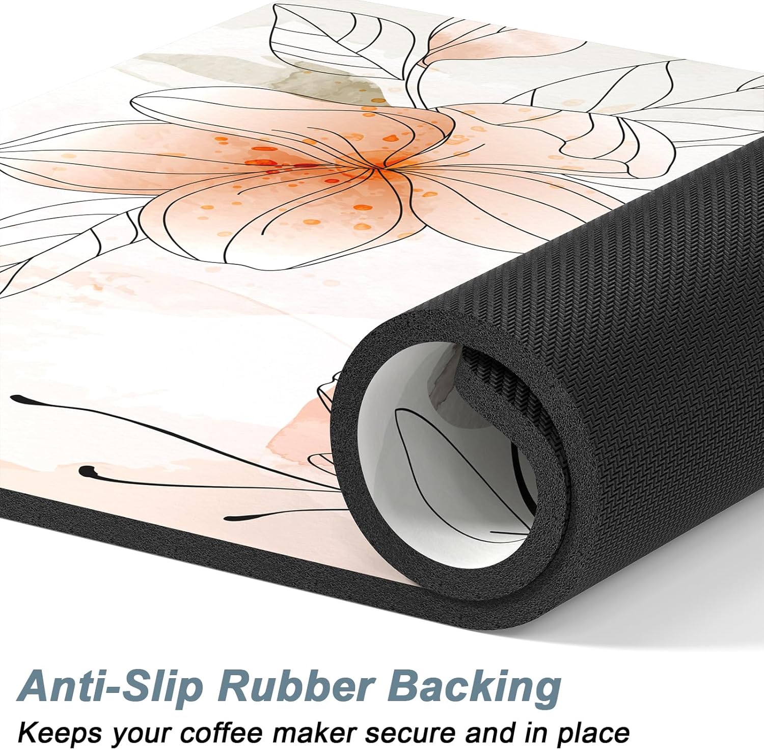 - Super Absorbent and Non-slip: Coffee bar decor mat is crafted from absorbent suede and anti-slip rubber. The surface is soft, heat-proofand and can quickly absorb liquid. The anti-slip rubber backing can firmly grip the floor without unwanted sliding