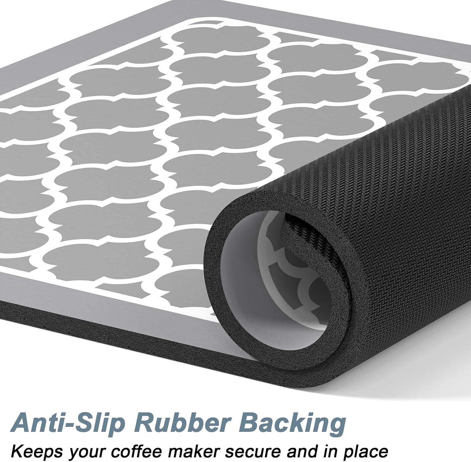 - Super Absorbent and Non-slip: Coffee bar decor mat is crafted from absorbent suede and anti-slip rubber. The surface is soft, heat-proofand and can quickly absorb liquid. The anti-slip rubber backing can firmly grip the floor without unwanted sliding