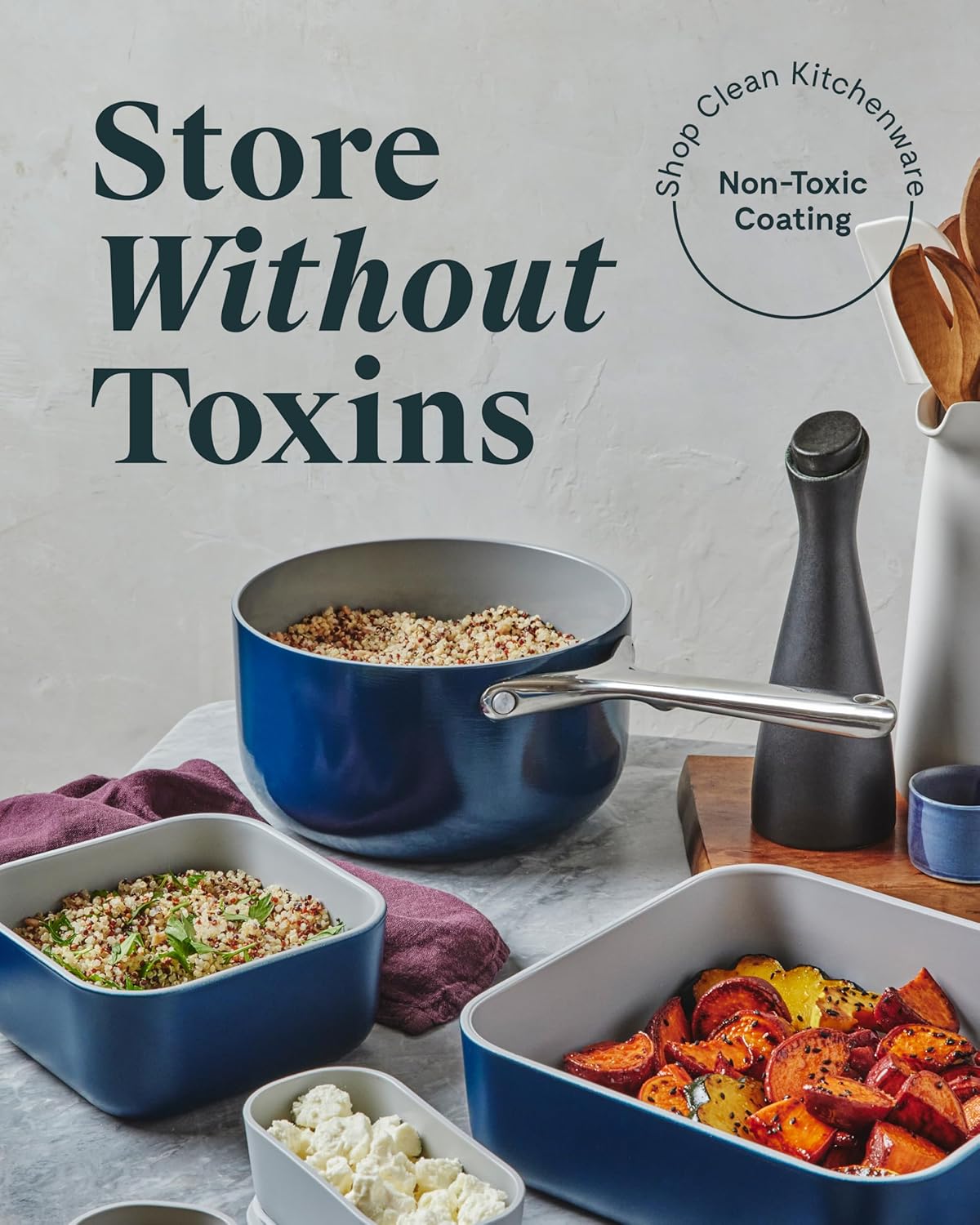 - KEEP YOUR FOOD FRESH: Look forward to leftovers with Caraway’s easy-to-store, non-toxic food storage containers. These 10 cup glass containers were designed to be displayed and keeps your food fresh & organized.
