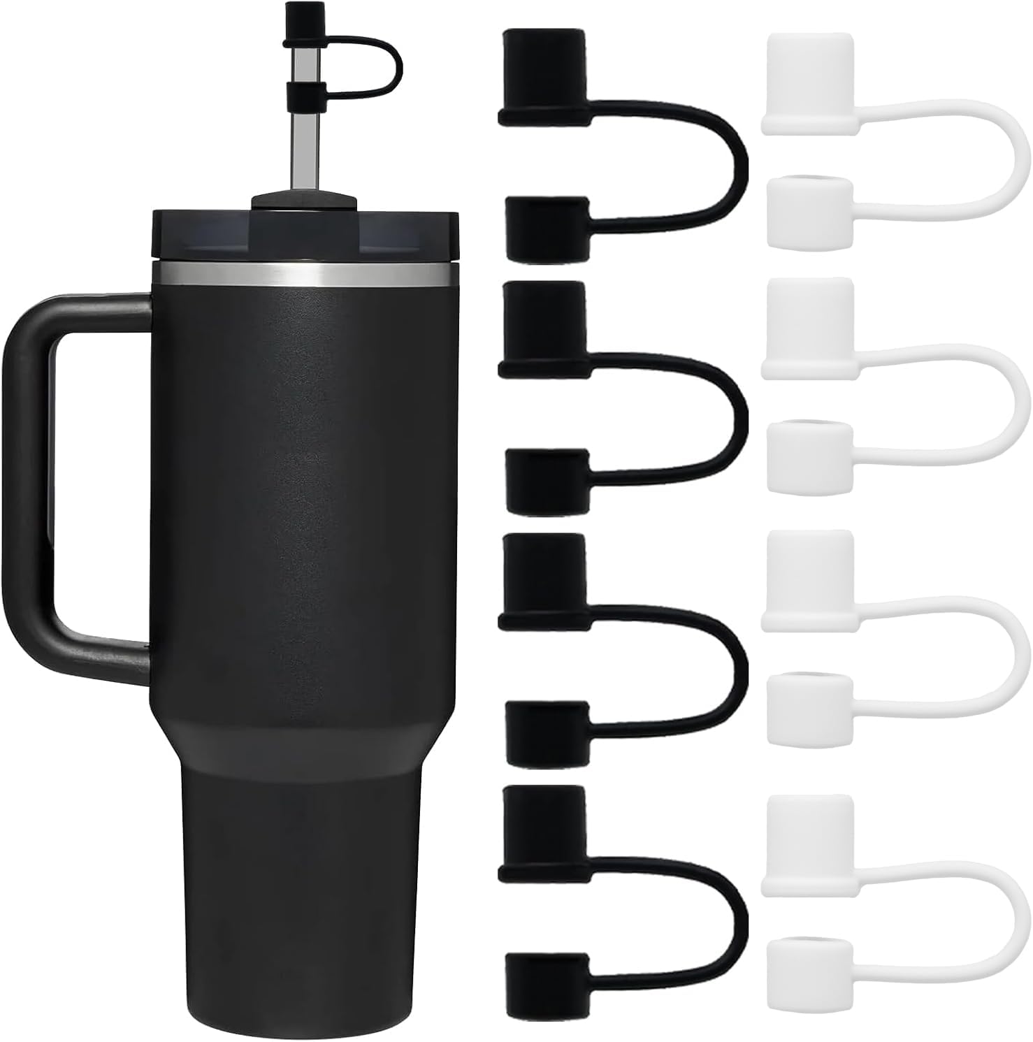 Straw Toppers for 10mm/0.39inch Diameter Straw Cover, compatable for Stanley/Owala Tumblers, Food Grade Silicone. (4Pcs-White+4Pcs-Black)