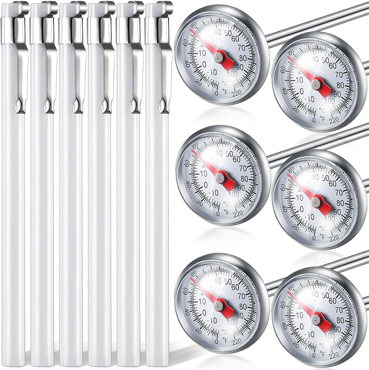Xuhal 6 Pcs Stainless Steel Kitchen Thermometer with 5 Inch Long Stem 1 Inch Dial Thermometer Milk Frothing Food for Oven Probe Meat Grill BBQ Cooking Chocolate Water(White)