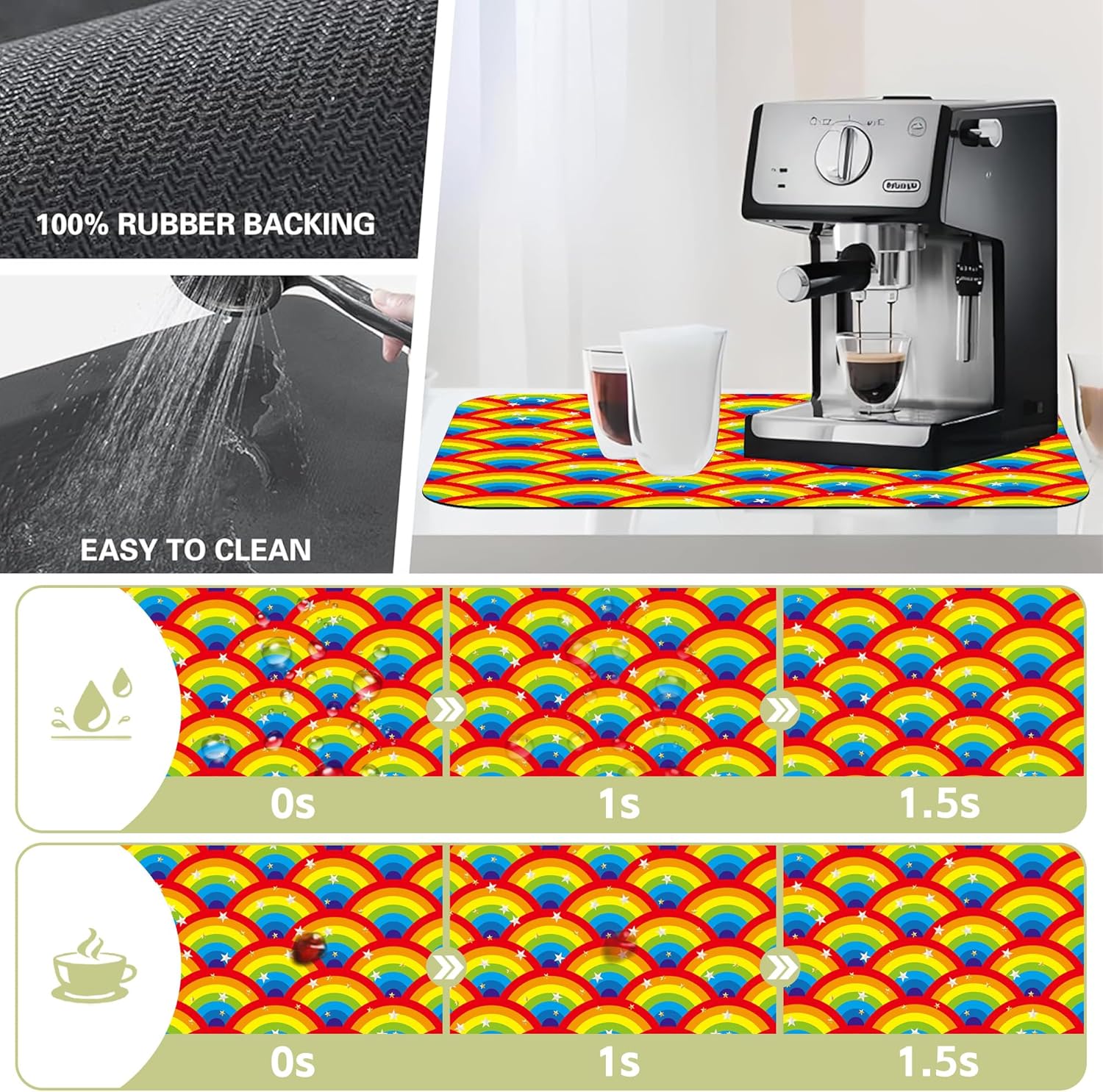 Kitchen Mat Rainbow Half Circle Star Dish Drying Mat 12"x19" Bsorbent Coffee Maker Mat for Sink Dishes or Under Rack Kitchen Counter Accessories Absorbent Hide Stain Rubber Backed Dish Drying Pad