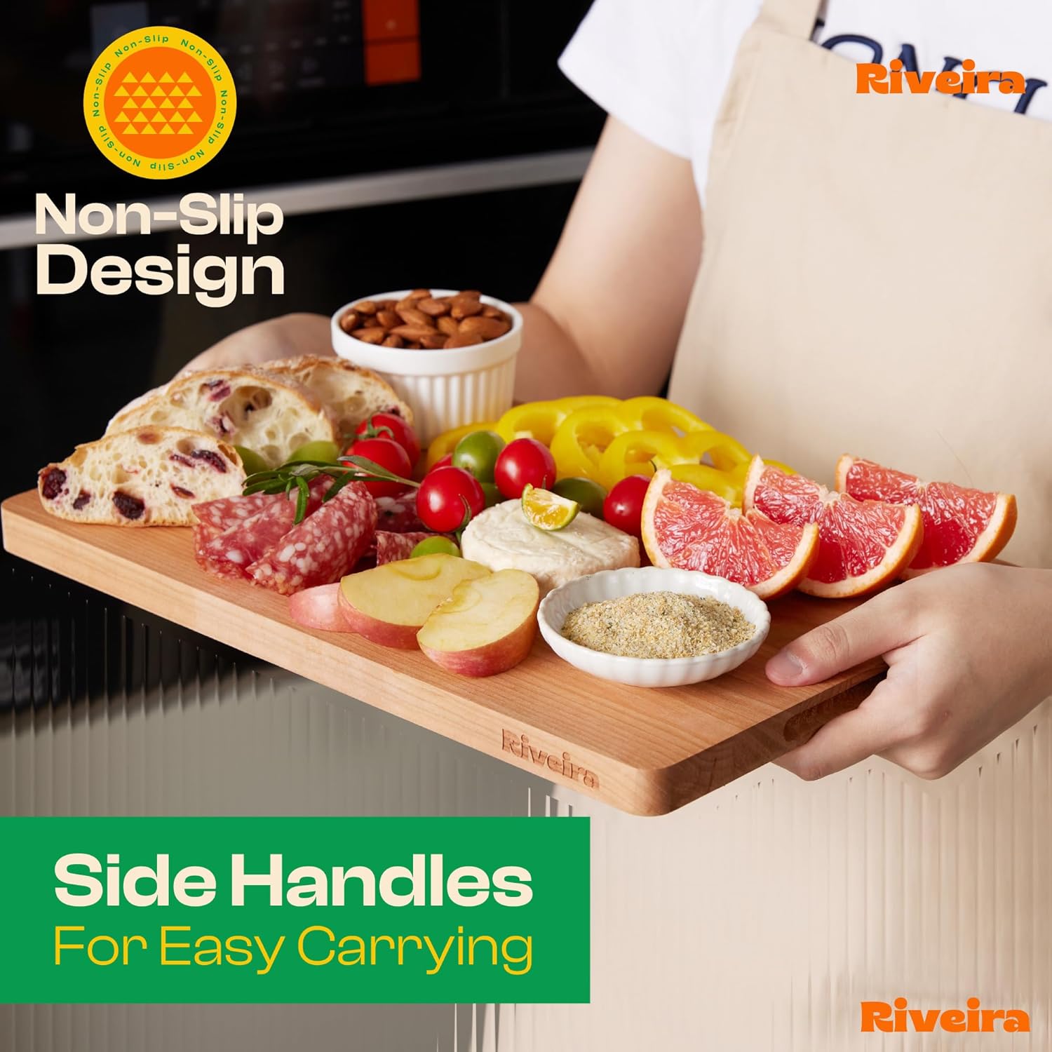 - Handle Everything with Confidence — The built-in handle holds of the cherry cutting boards are designed for handling everything with confidence and easy maneuvering. Pre-oiled and ready for immediate bewilderment, this wooden chopping board is not just convenient for the kitchen mess but has a unique design to maintain, ensuring a performance that is both comfortable and clean for chopping boards for kitchen. Riviera non toxic cutting boards for kitchen will be perfect in your kitchen.