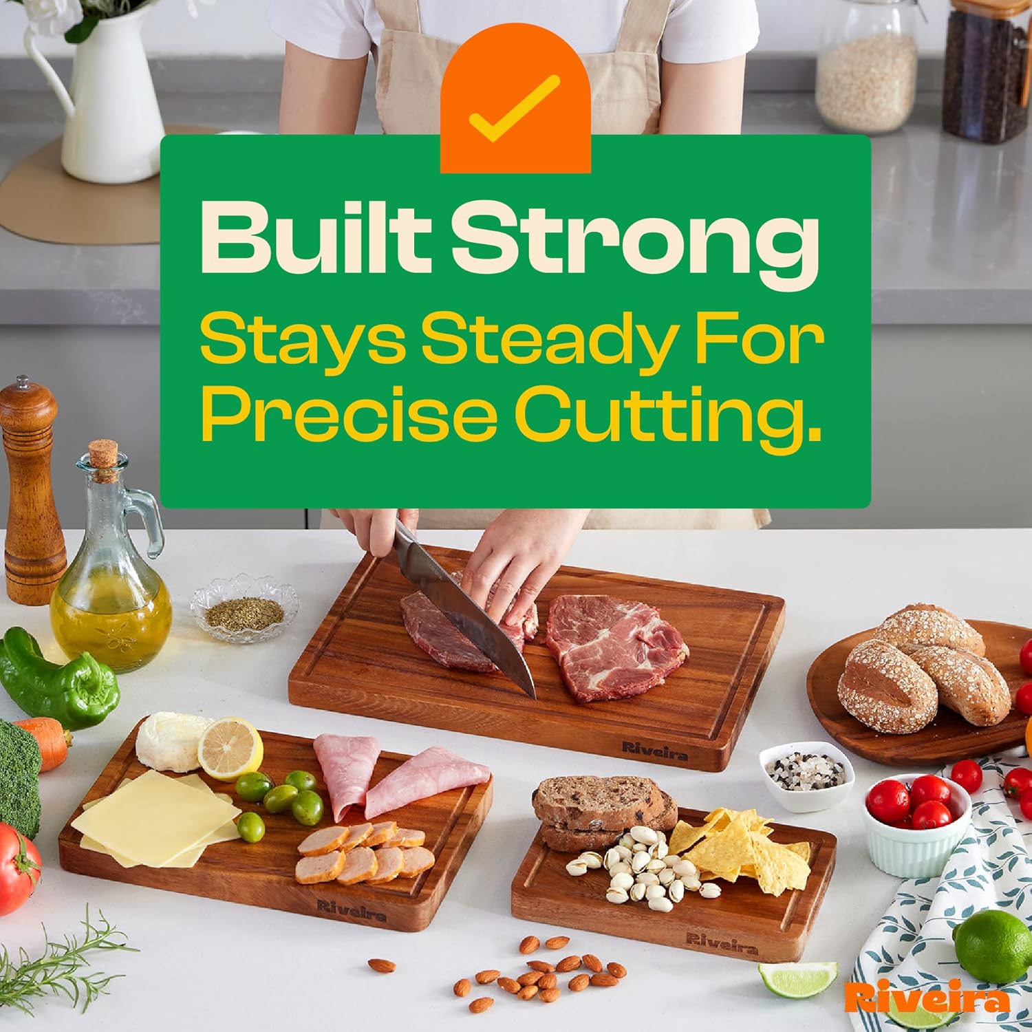 Riveira Walnut Wood Cutting Board – Versatile And Durable: Set Of 2 Pcs Rectangular Wooden Cutting Board – Natural Wooden Cutting Boards For Kitchen – Complete Walnut Wooden Chopping Board