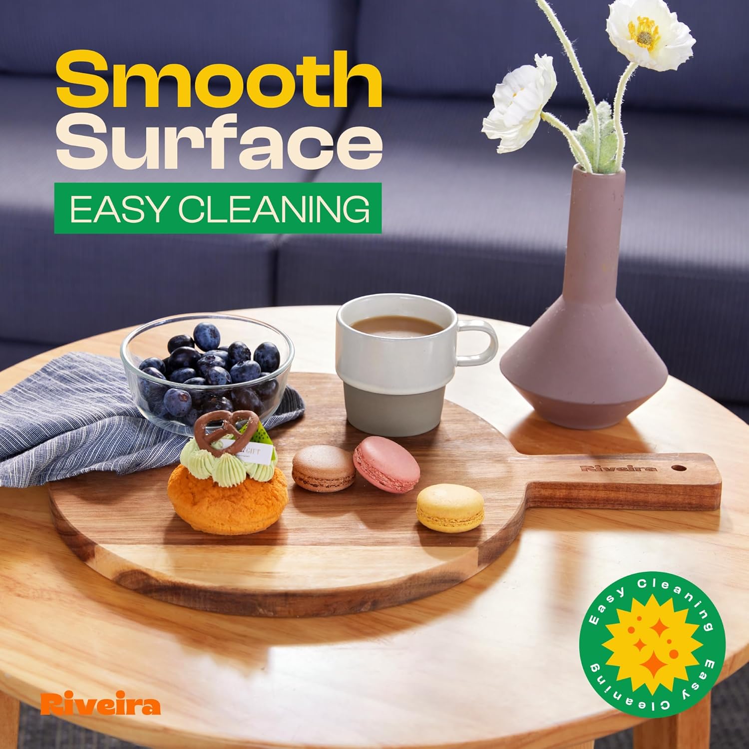 - Handle Everything with Confidence — The built-in handle holds of the acacia bread board are designed for handling everything with confidence and easy maneuvering. Pre-oiled and ready for immediate bewilderment, this acacia wood is not just convenient for the kitchen mess but has a unique design to maintain, ensuring a performance that is both comfortable and clean for steak cutting board. Riviera cutting board decor will be perfect in your kitchen.