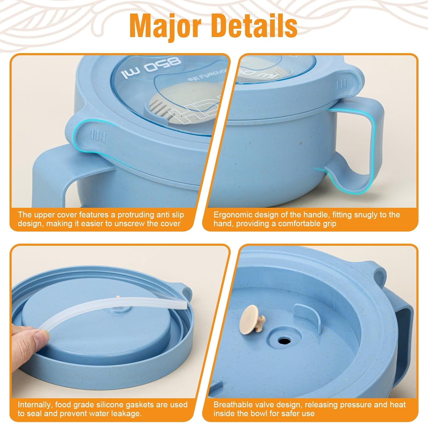Microwave Bowl with Lids,Ramen Bowl,28oz Microwave Soup Mugs with Handles,for Soup and Instant Noodles,Oatmeal, Gumbo, Salad, College Dorm Room Essentials for Girls for Boys Apartment Essentials