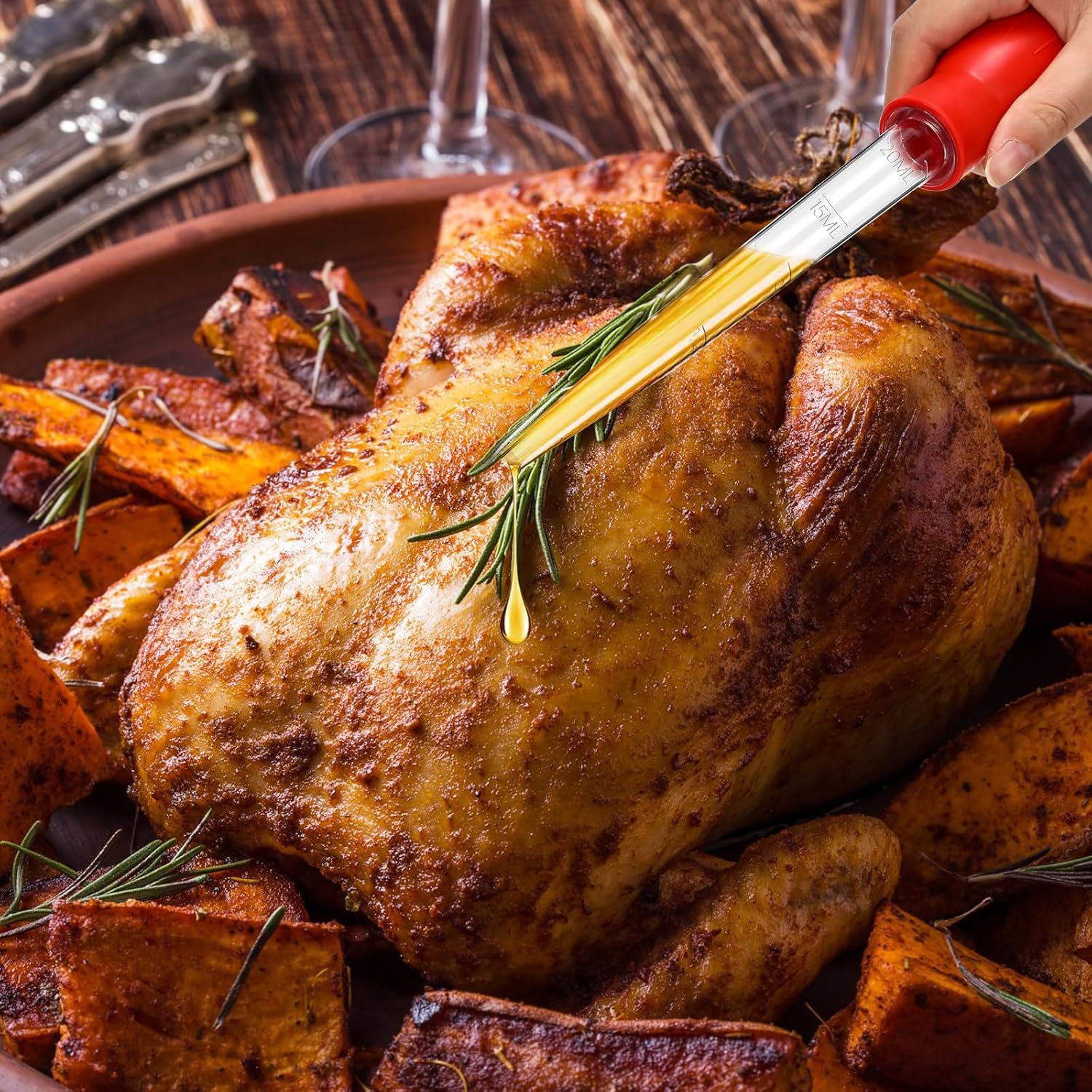 - Function: this turkey baster creates powerful suction to baste a turkey, roast chicken, add flavor to meats,retrieve juices from the pan, a marinade, or other sauces you want drizzled over the meat; Use our turkey baster at Christmas, Thanksgiving, or any family dinner