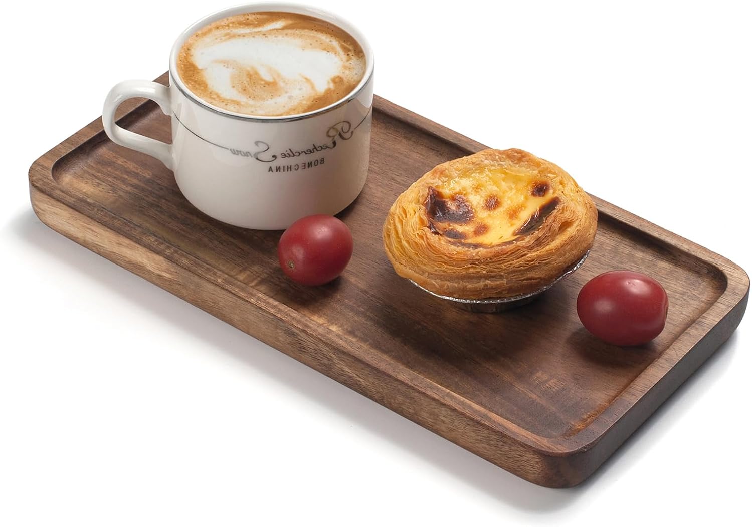 - Decorative Tray: Minimalist design and unique acacia wood construction creates retro tones for your home, suitable for any decor style. The curved edge design makes it more convenient to move the tray and keeps items safe on it.