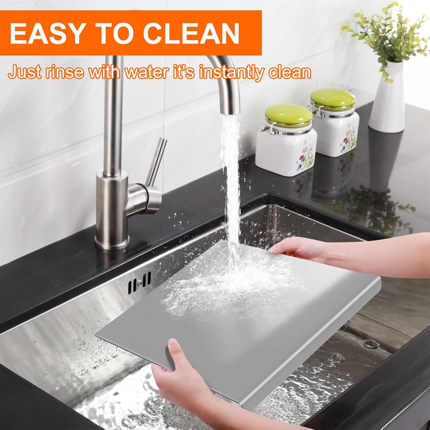 - ăCLEANUP IS SO EASYăOur stainless steel cutting board is non-porous and effortless to clean, making it super easy to maintain and resistant to lingering odors. No more worrying about yesterday's garlic invading today's salad!