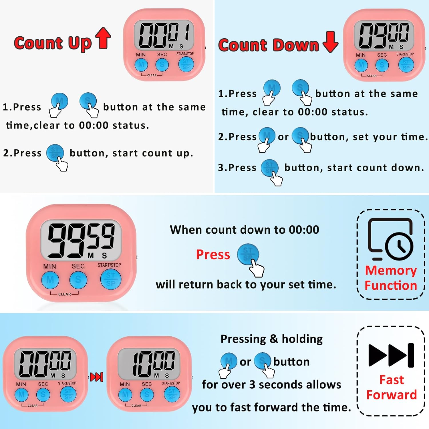 - Easy to use: Digital Timer can use for countup/countdown. With three simple buttons, anyone can learn to use them. The memory function will automatically remember the countdown settings.
